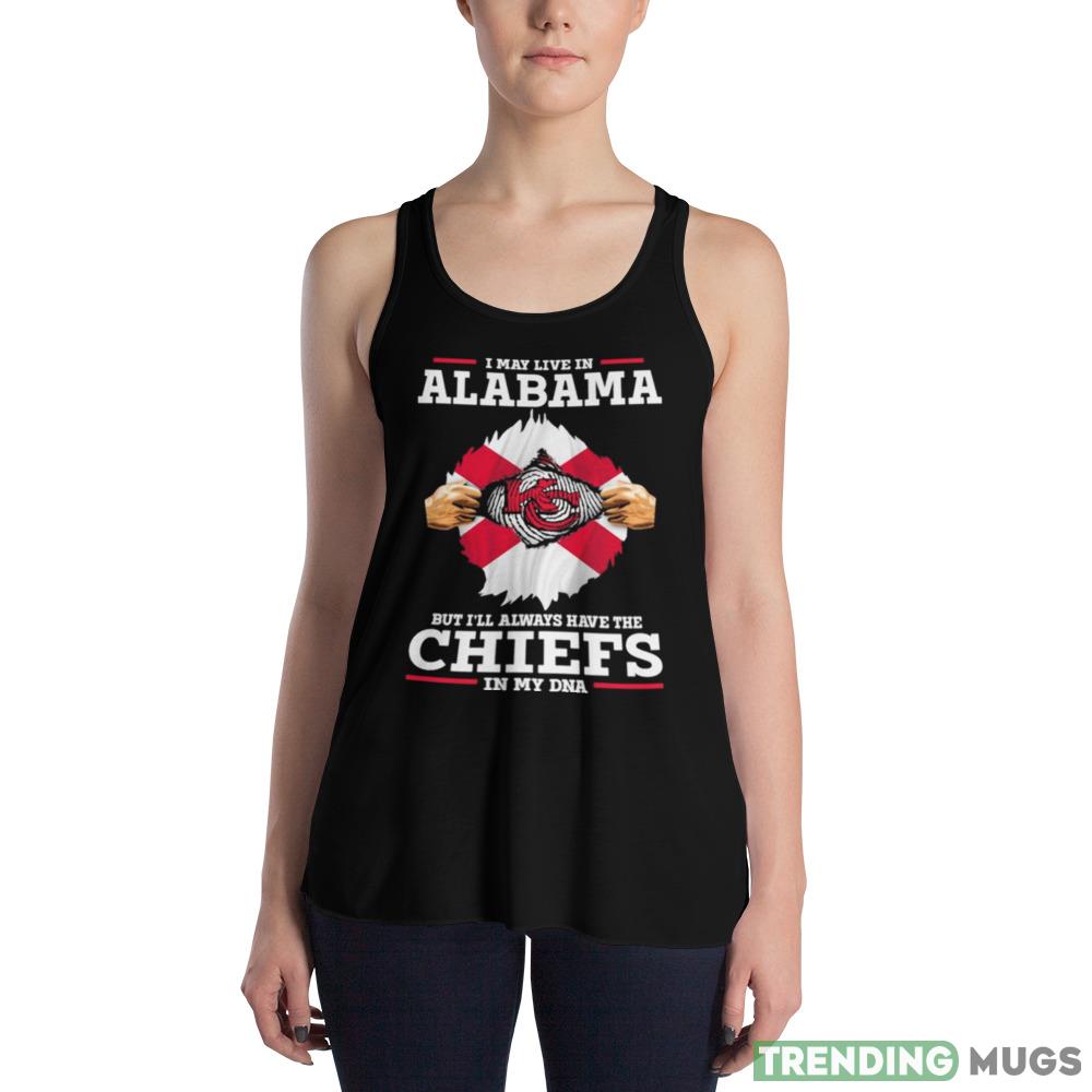 I may Live in Alabama but I’ll always have the Kansas City Chiefs in my DNA shirt – 8800 Women’s Flowy Racerback Tank