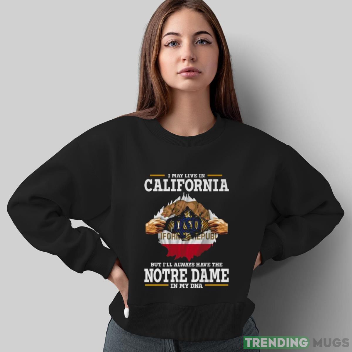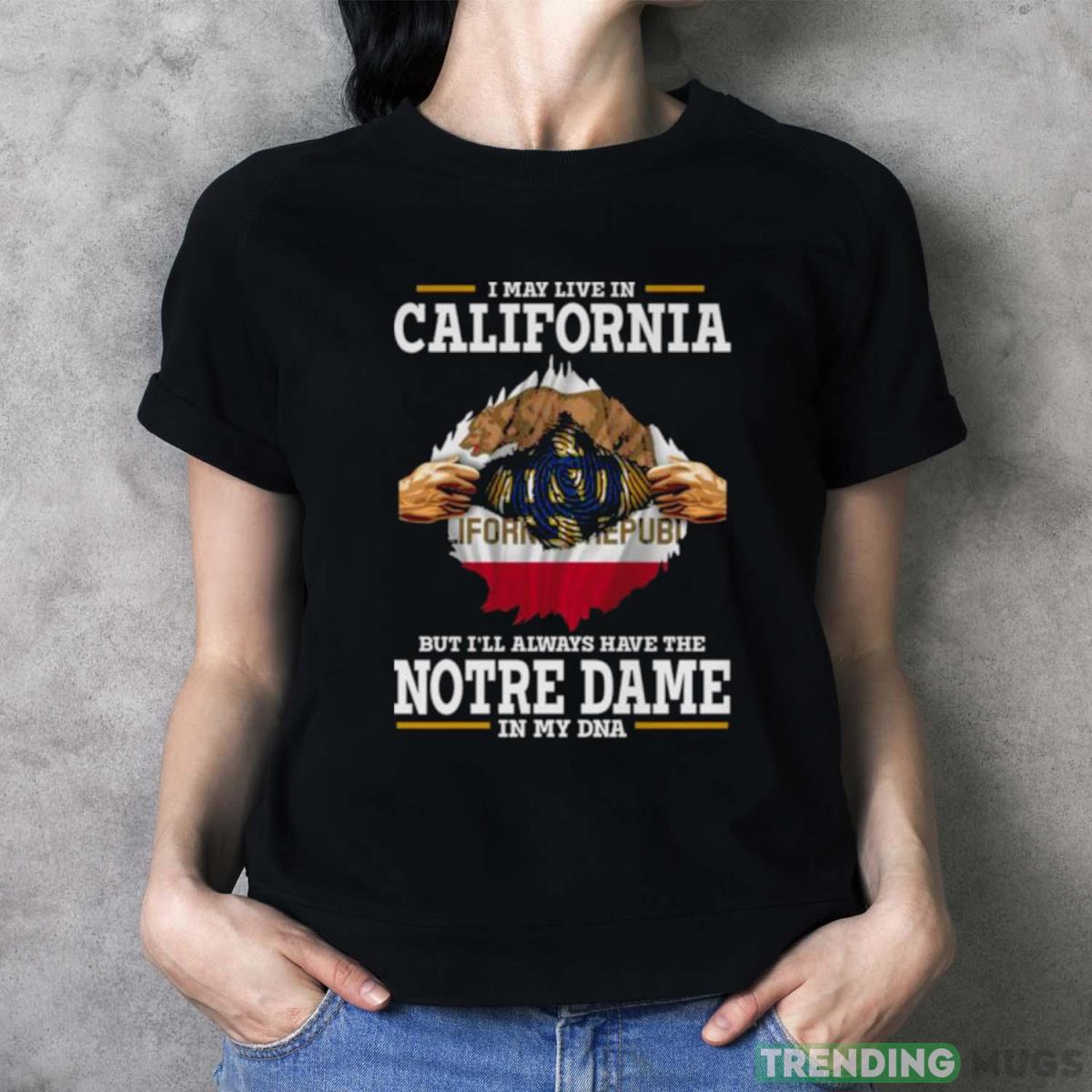 Some of the I May Live In California But I’ll Always Have The Notre Dame Fighting Irish In My DNA 2023 shirt photos