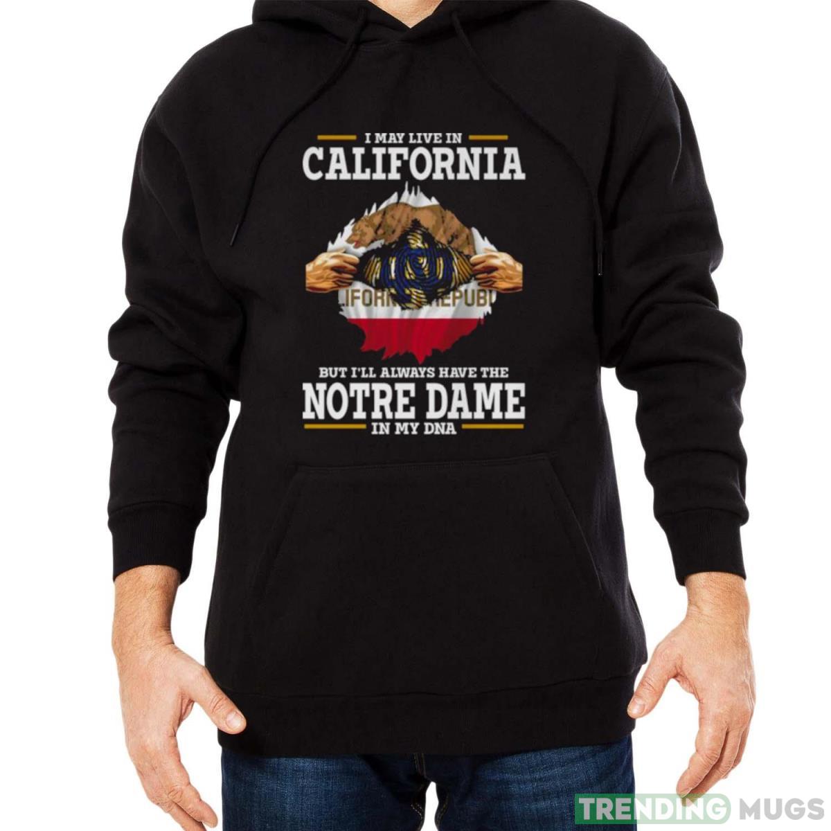 I May Live In California But I’ll Always Have The Notre Dame Fighting Irish In My DNA 2023 shirt – Men Black Hoodie