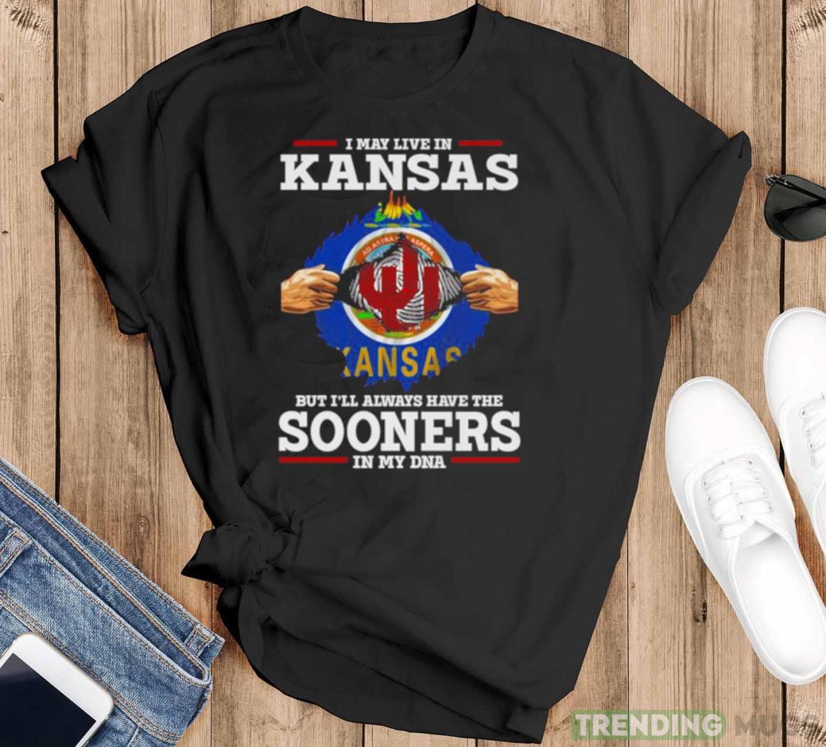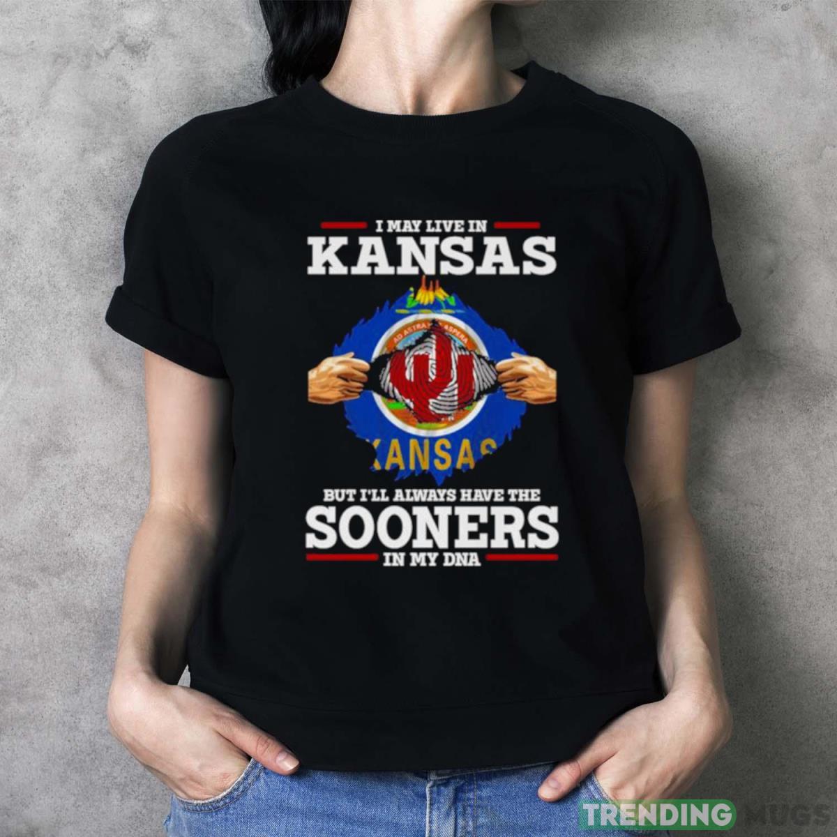 Some of the I May Live In Kansas But I’ll Always Have The Oklahoma Sooners In My DNA 2023 shirt photos