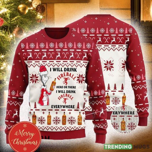 Don’t miss out on the chance to add some holiday magic to your wardrobe. Order your “I Will Drink Fireball Whiskey Here Or There” Ugly Christmas Sweater today and let the festivities begin!