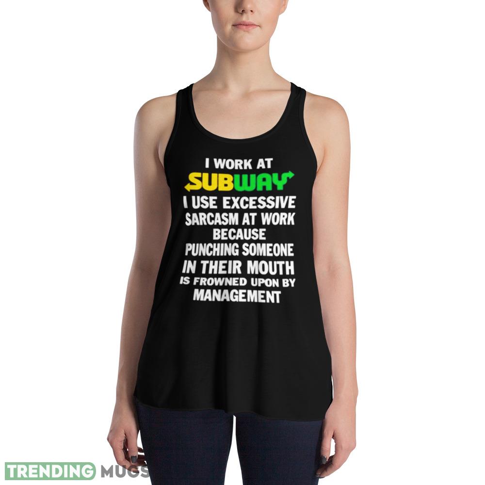 Are you a fan of Subway sandwiches and have a wicked sense of humor? Then our “I Work at Subway I Use Excessive Sarcasm at work because Punching Someone in their Mouth” shirt is just for you! This shirt is perfect for those who like to add a little bit of edge to their work attire. Not only will you look stylish in this shirt, but you’ll also be able to express your personality through the witty slogan. Made with high-quality fabric and designed for comfort, this shirt is ideal for everyday wear. So go ahead and make a statement at work with our “I Work at Subway I Use Excessive Sarcasm at work because Punching Someone in their Mouth” shirt!