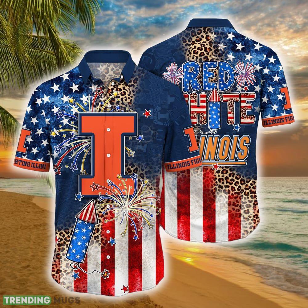 Illinois Fighting Illini NCAA3 Hawaiian Shirt Independence Day Holidays For Men Women Gift Details: