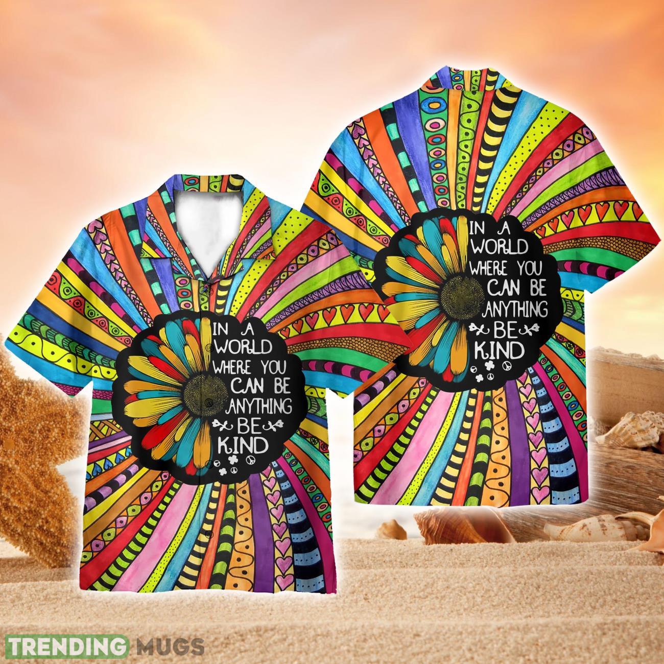 In A World Where You Can Be Anything Be Kind Hippie Sunflower 3D Hawaiian Shirt Holiday Gift Details: