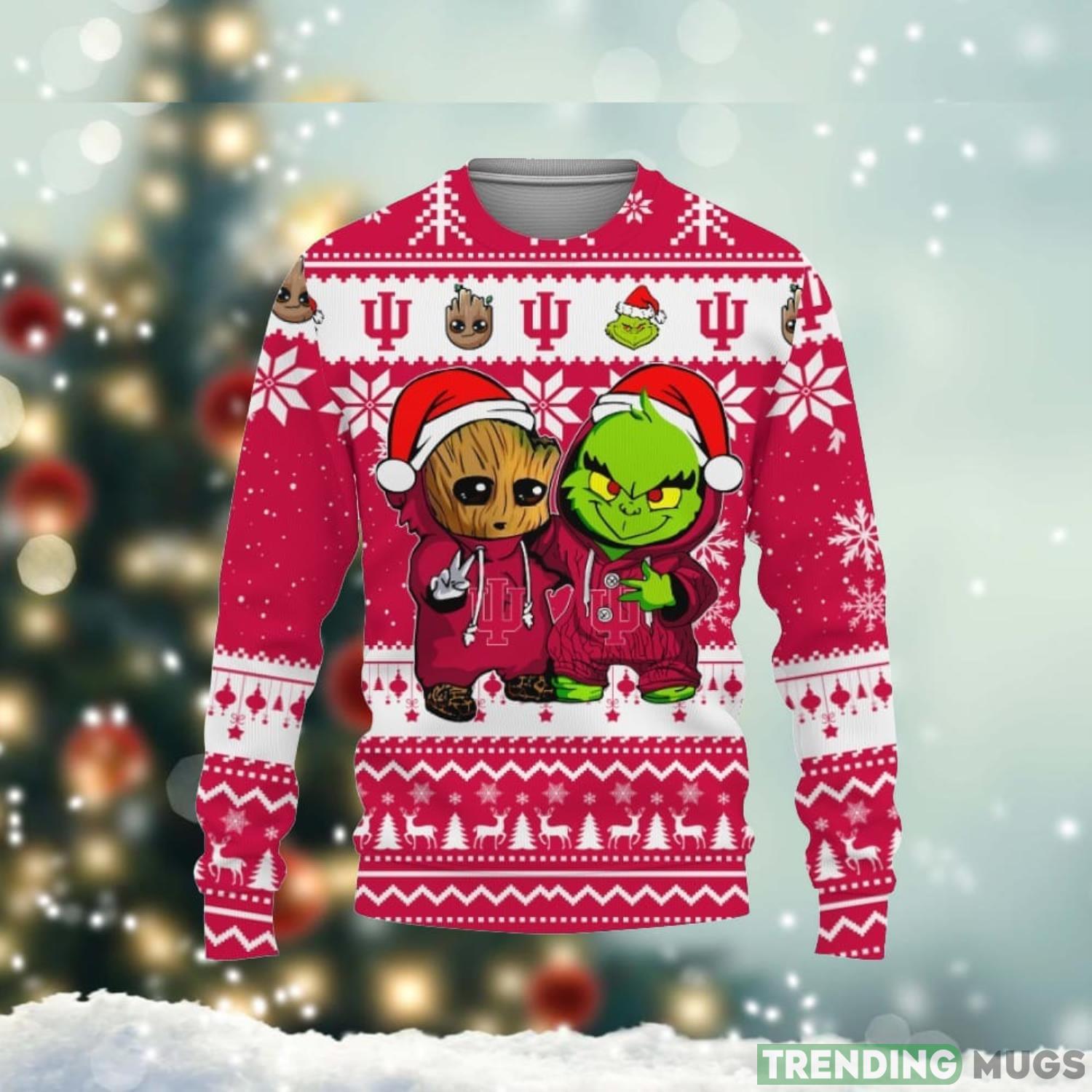 Indiana Hoosiers Baby Groot And Grinch Best Friends 3D Ugly Christmas Sweater Cute Gift Unisex Christmas Gift Informations: