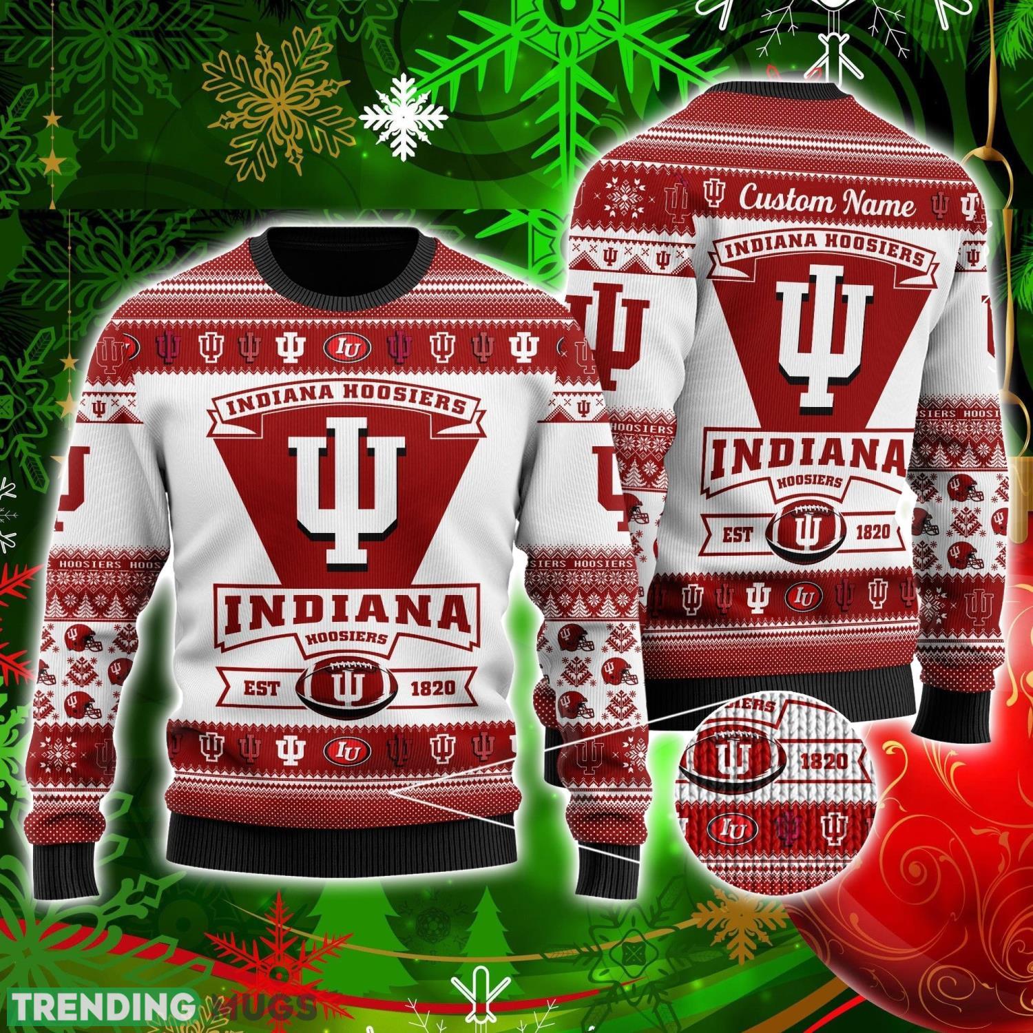Indiana Hoosiers Football Team Logo Custom Name Personalized Ugly Christmas Sweater Christmas Gift For Big Fans Informations: