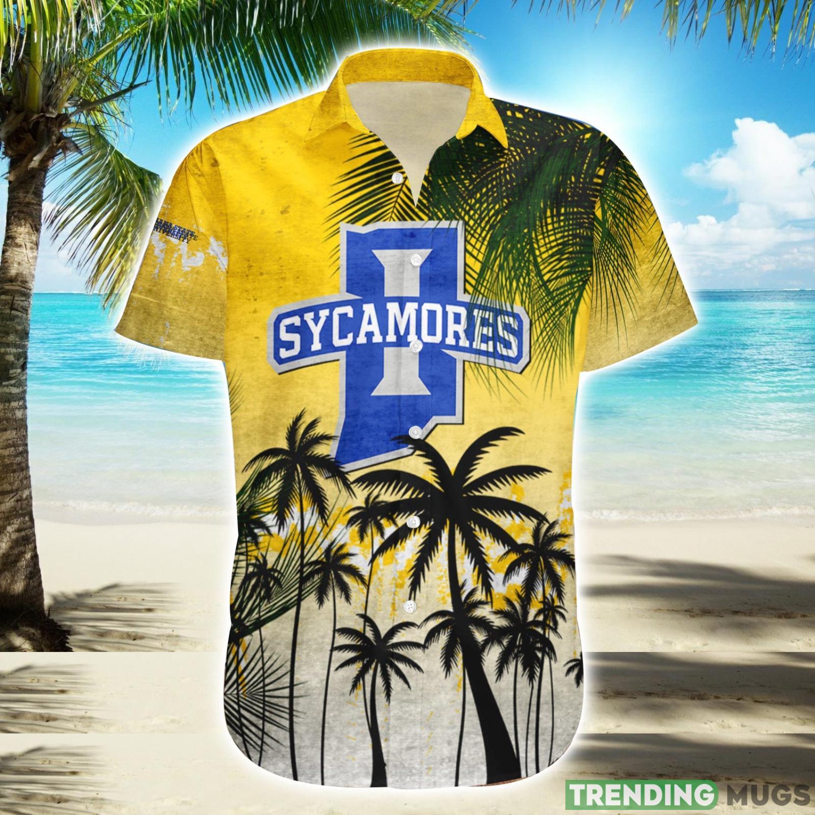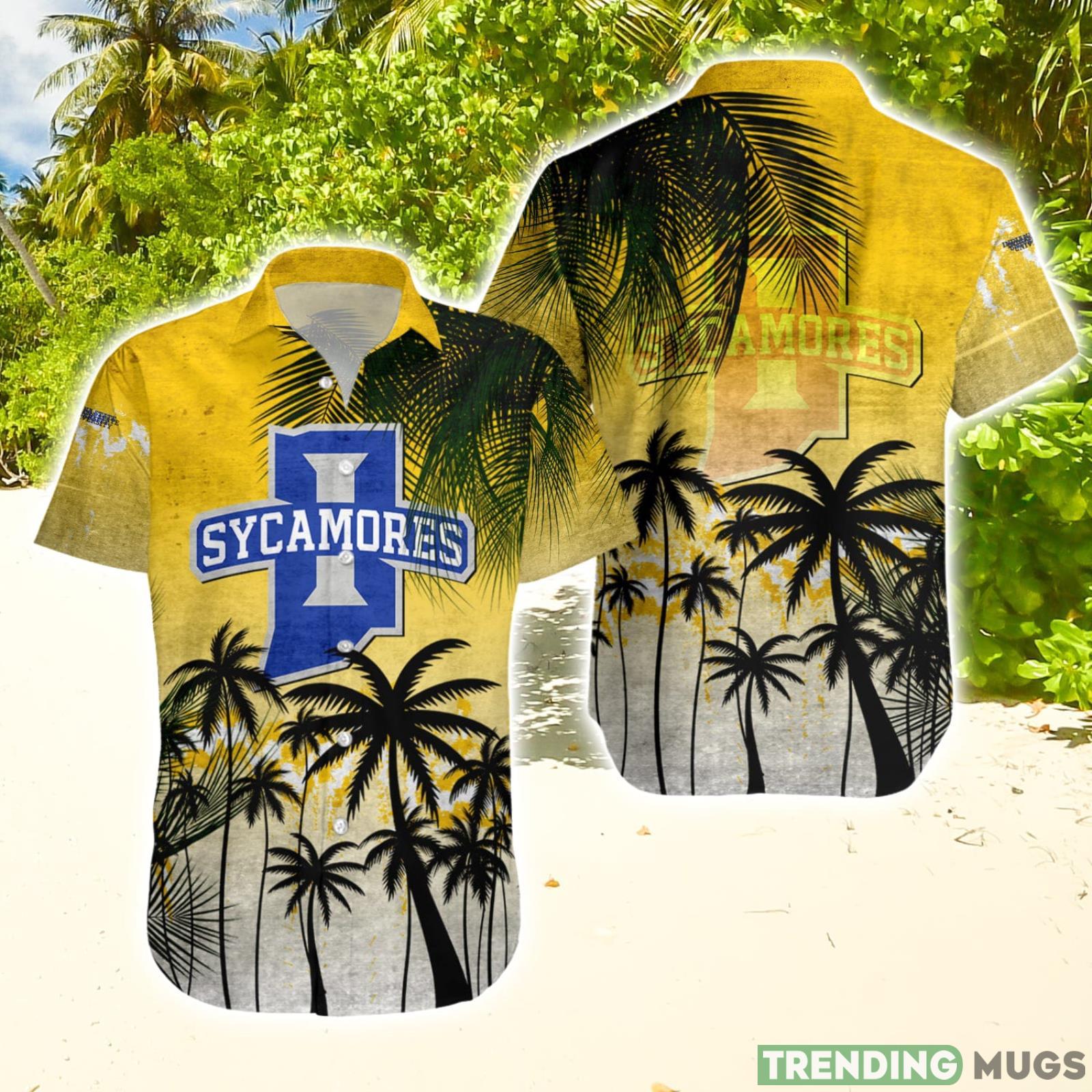 Indiana State Sycamores Hawaiian Shirt Summer Gift Coconut Tree Tropical Grunge Pattern For NCAA Fans Details: