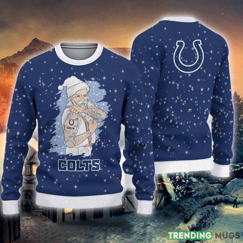 Indianapolis Colts Christmas Santa Claus Tattoo Knitted Ugly Christmas Sweater AOP Gift For Men And Women Informations: