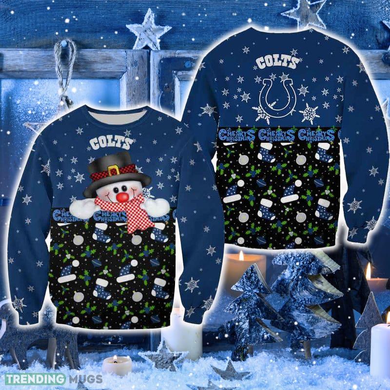 Whether you’re cheering on your favorite team from the stands or simply spreading holiday cheer, our Indianapolis Colts Christmas Snowman Holly Sweater is a must-have addition to your wardrobe. Grab one for yourself or surprise a loved one with a gift that will make their holidays even more special.