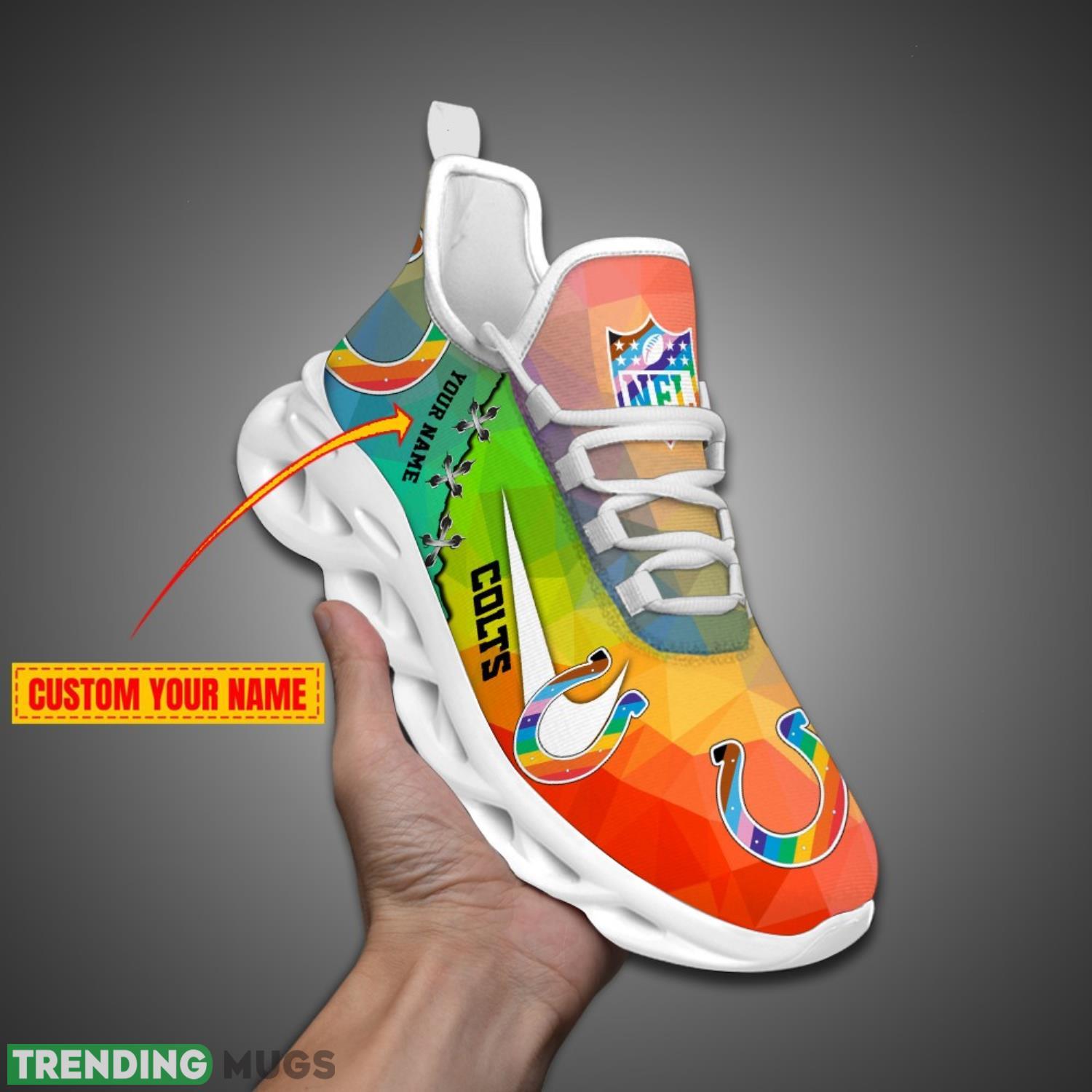 Indianapolis Colts Colorful Sneakers NFL Max Soul Shoes For Fans Custom Name information: