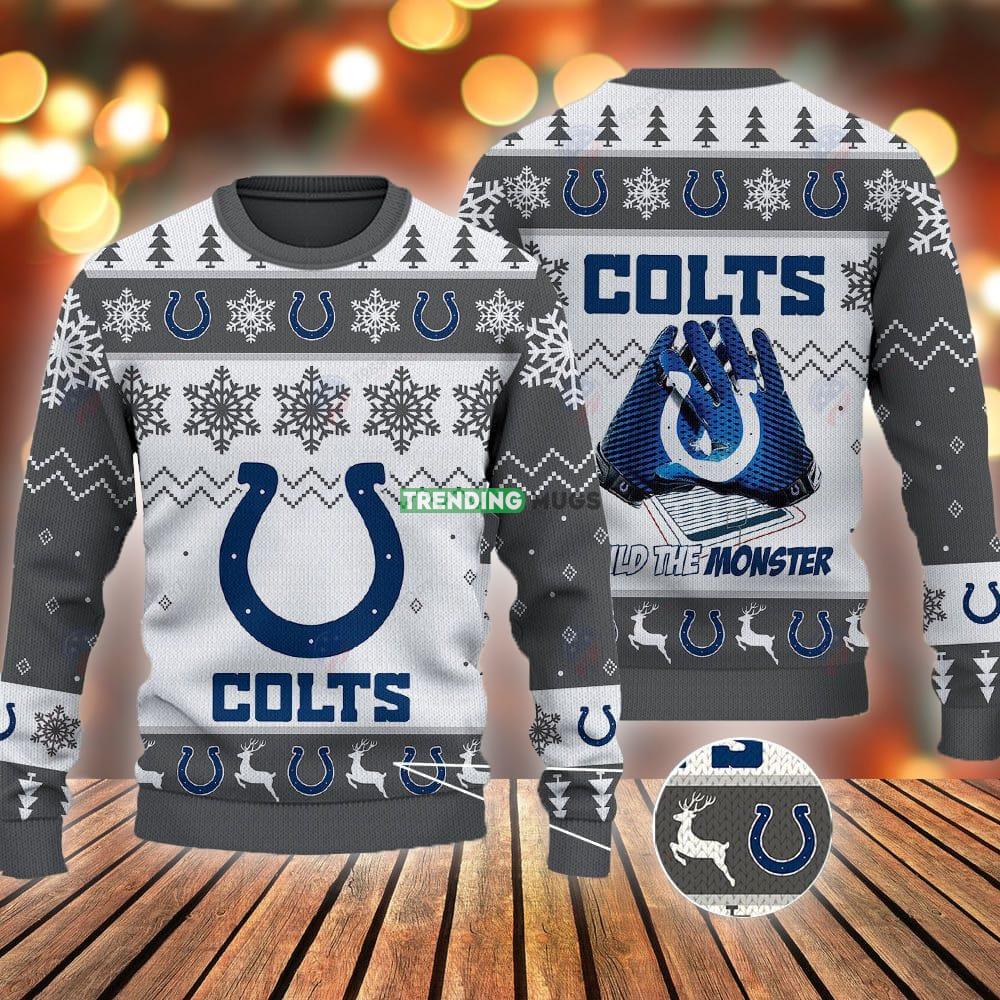 Indianapolis Colts Football Gloves Pattern Ugly Xmas Grey Sweater AOP Gift Christmas Informations: