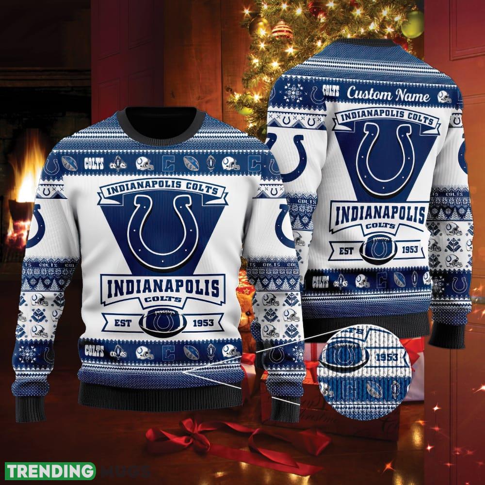 Indianapolis Colts Football Team Logo Ugly Christmas 3D Sweater Traditional Custom Name – Indianapolis Colts Football Team Logo Ugly Christmas 3D Sweater Traditional Custom Name