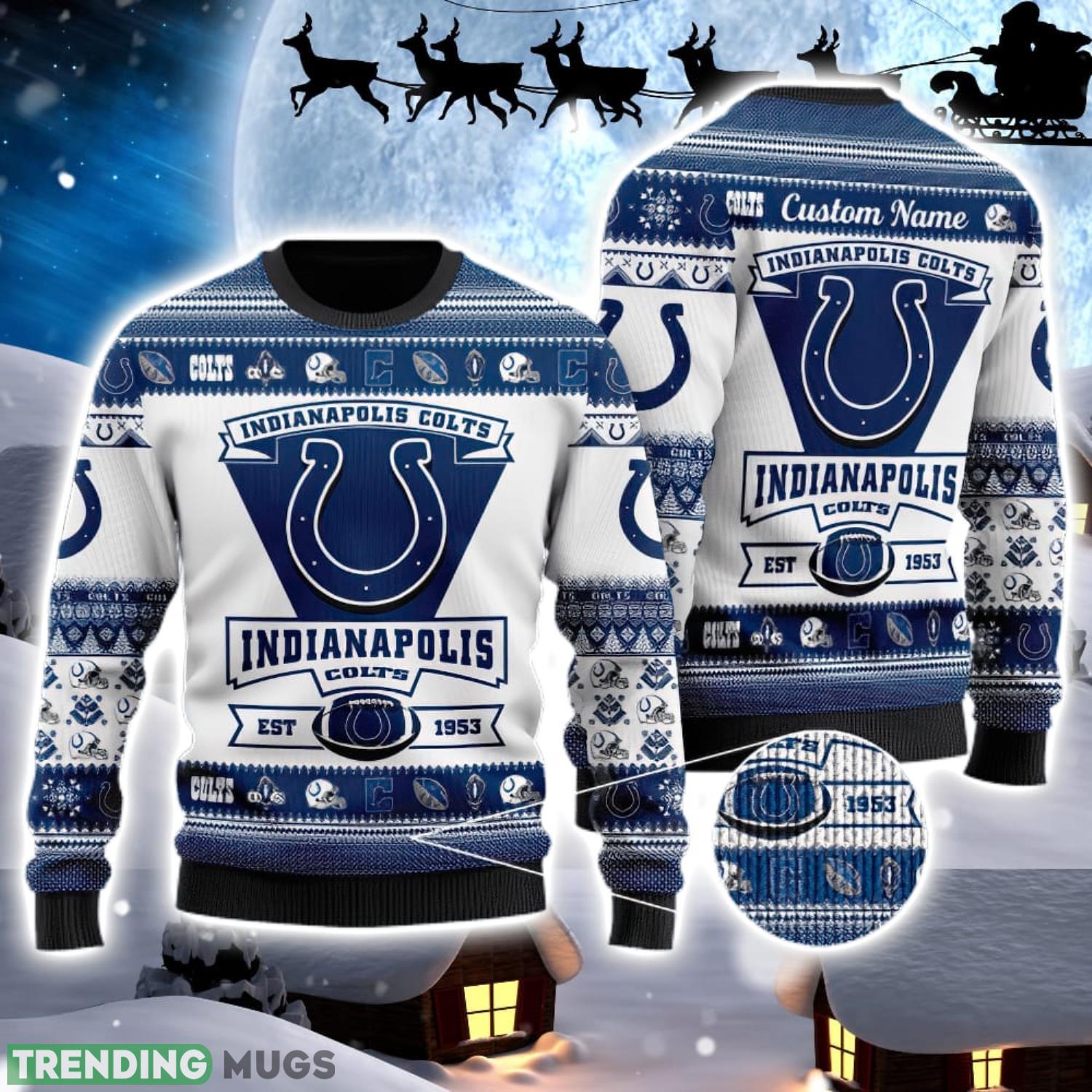 Whether you’re cheering on your favorite team at the stadium or simply enjoying the festive season, our Indianapolis Colts Logo Custom Name Ugly Christmas Sweater is a must-have addition to your wardrobe. So don’t miss out on the chance to showcase your Colts pride in the most festive way possible!