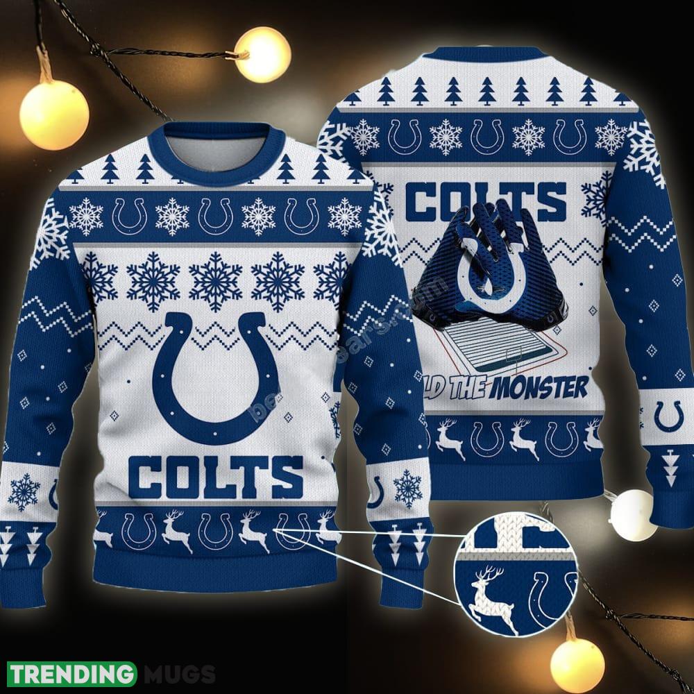 Featuring the iconic Indianapolis Colts logo prominently displayed on the front, this sweater is a must-have for game days, holiday parties, or just cozy nights by the fire. The vivid team colors and festive holiday design make it a standout piece that will surely attract compliments and turn heads wherever you go.