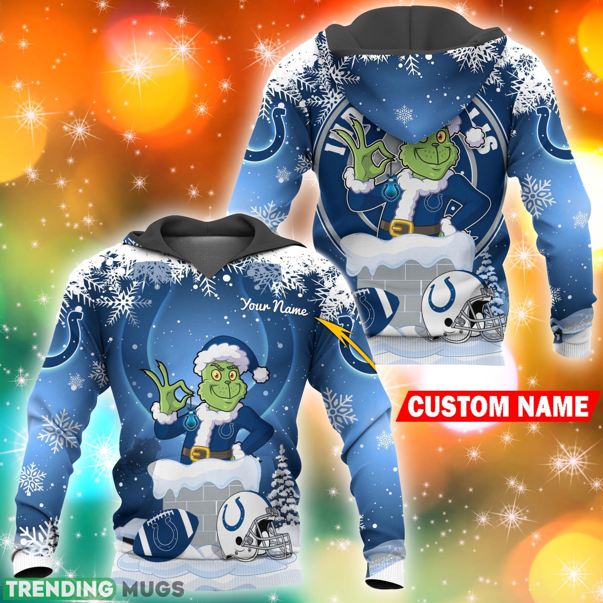 Indianapolis Colts NFL Christmas Grinch in Chimney 3D Hoodie Pullover Prints Custom Name Information