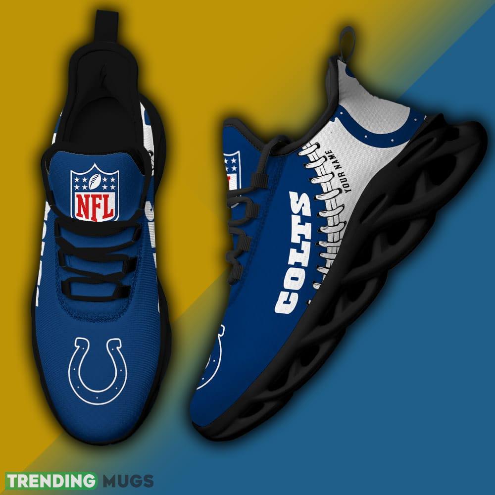 So why wait? Step up your shoe game and show off your Colts pride in style with our NFL Logo New Style Max Soul Shoes Custom Name For Fans. Order yours today and get ready to turn heads wherever you go!