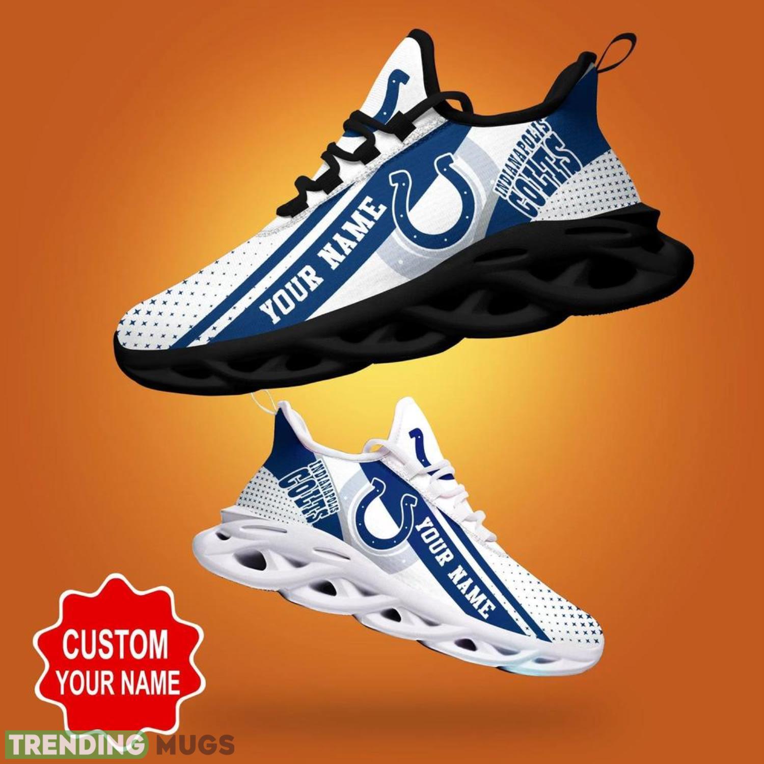 Get ready to step up your game with the Indianapolis Colts NFL Max Soul Shoes Custom Name Sneakers! These hot trending sneakers are the ultimate personalized gift for all NFL fans, designed for both men and women.