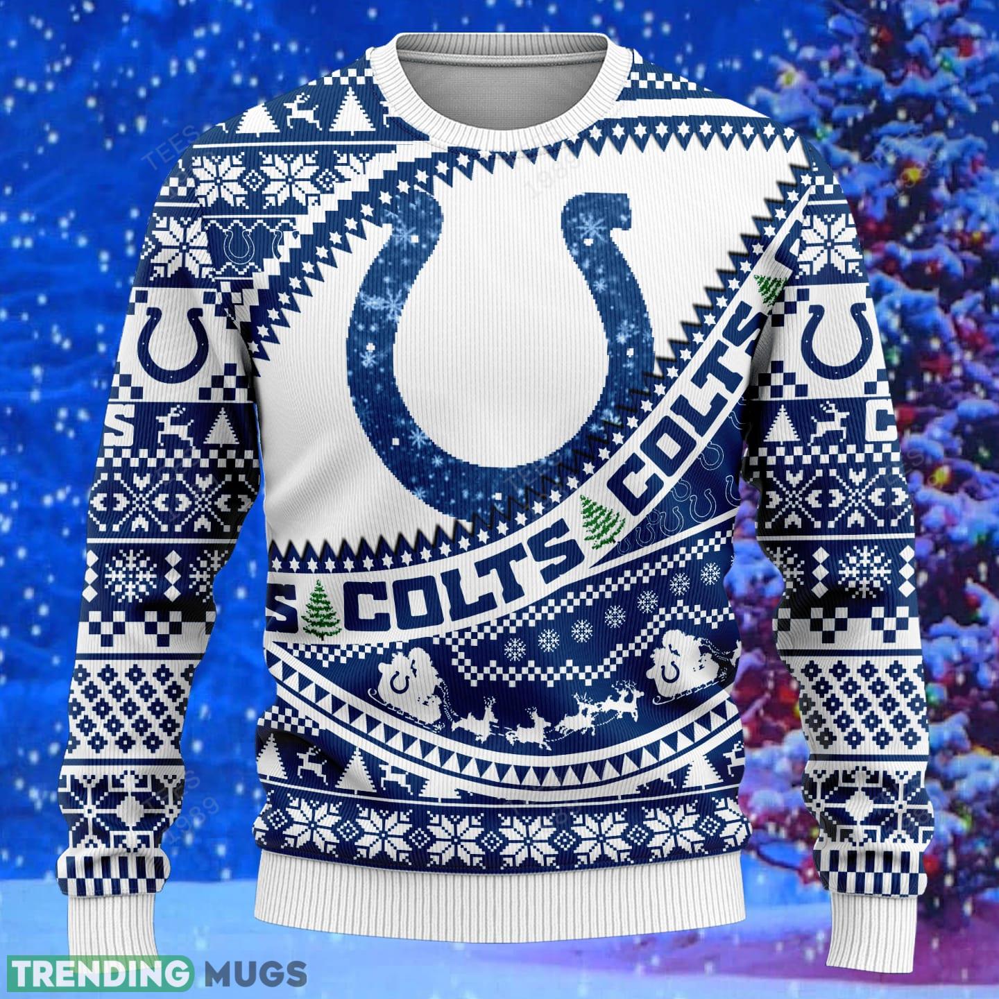 Featuring a playful design of snowflakes and reindeer, this sweater proudly displays the iconic Indianapolis Colts logo, showcasing your team pride in style. The 3D elements add a fun and whimsical touch, making this sweater truly stand out from the crowd.