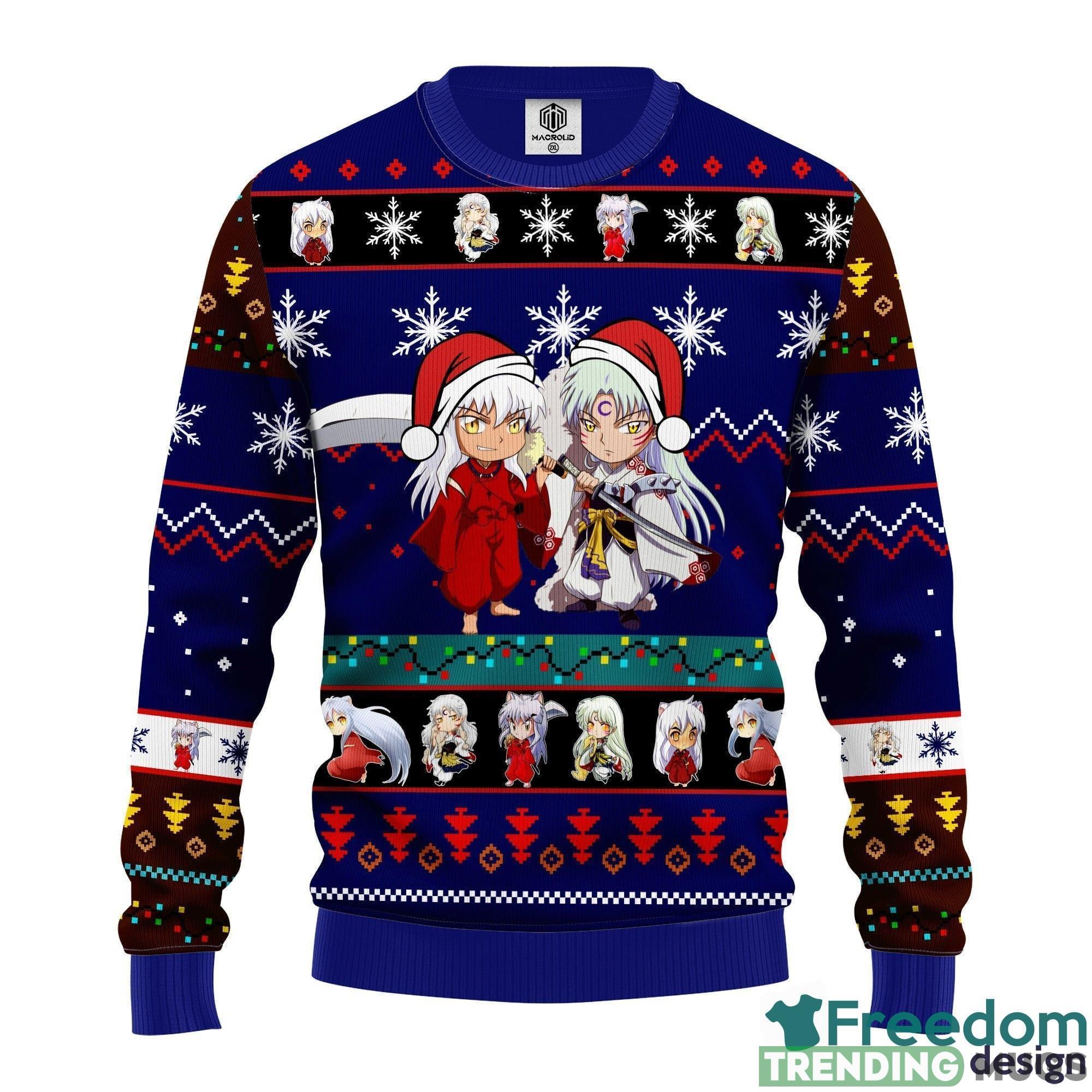 Inuyasha Blue 1 Thanksgiving Women Mens Ugly Christmas 3D Knitted Sweater – Inuyasha Ugly Christmas Sweater Blue 1 Amazing Gift Idea Thanksgiving Gift