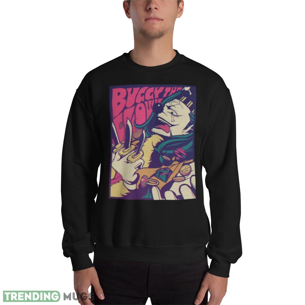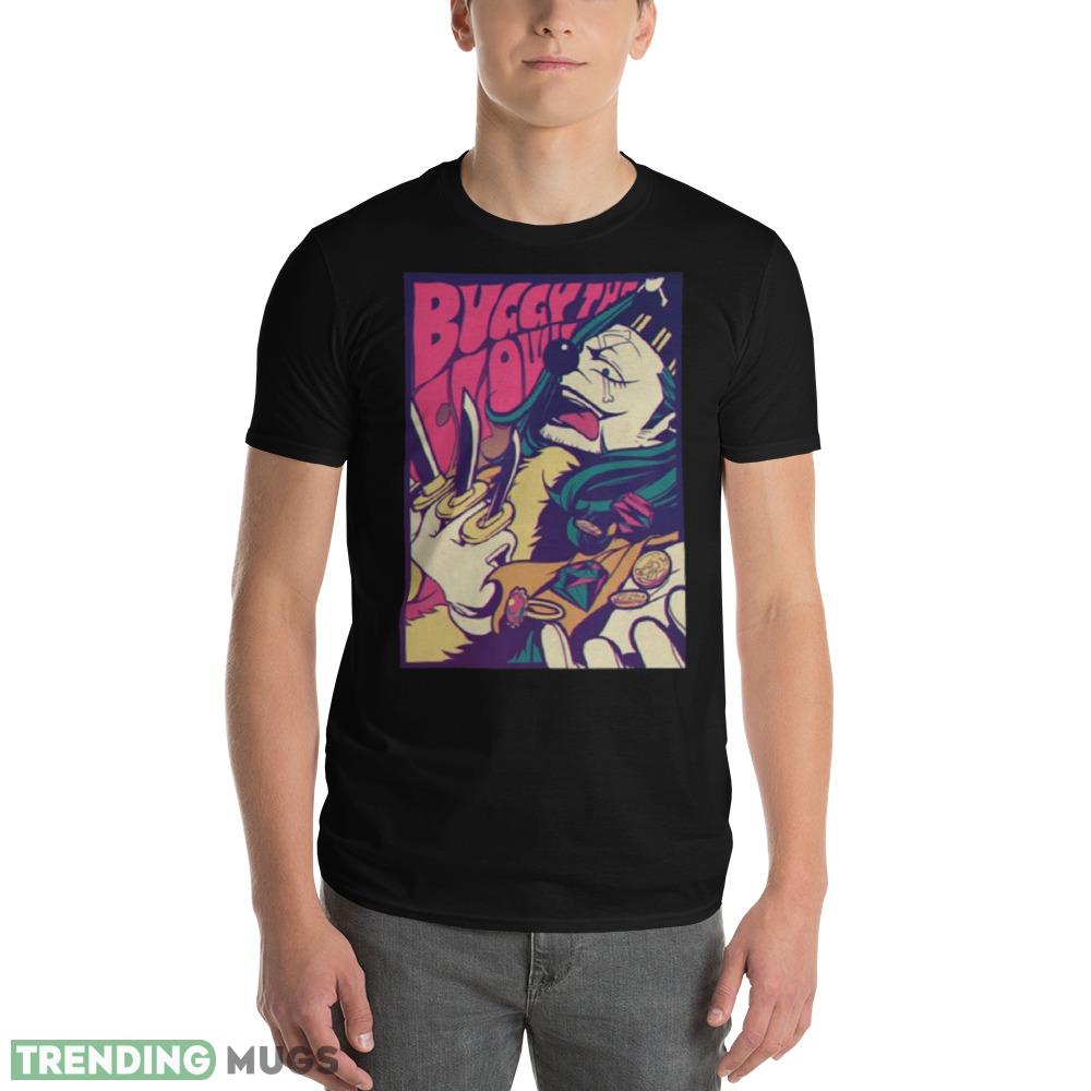 Crafted from high-quality materials, this shirt boasts a soft and breathable fabric that feels great against your skin. The bold and eye-catching design features Buggy, one of the most iconic villains in the One Piece universe, rendered in stunning detail with vibrant colors that pop.