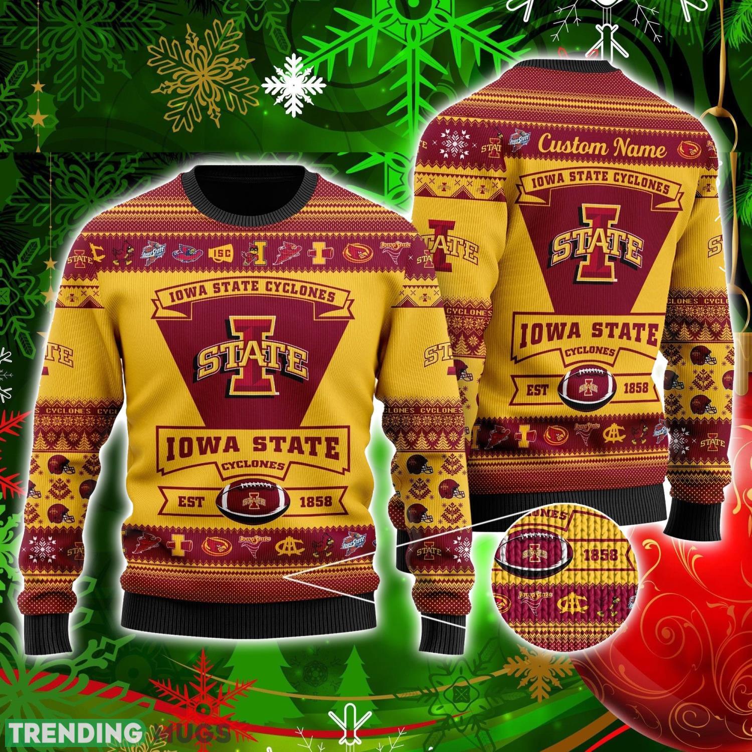 Get ready to show off your love for the Iowa State Cyclones Football Team in style with our custom name personalized ugly Christmas sweater! This is the perfect Christmas gift for all the big fans out there who want to stand out from the crowd during the holiday season.