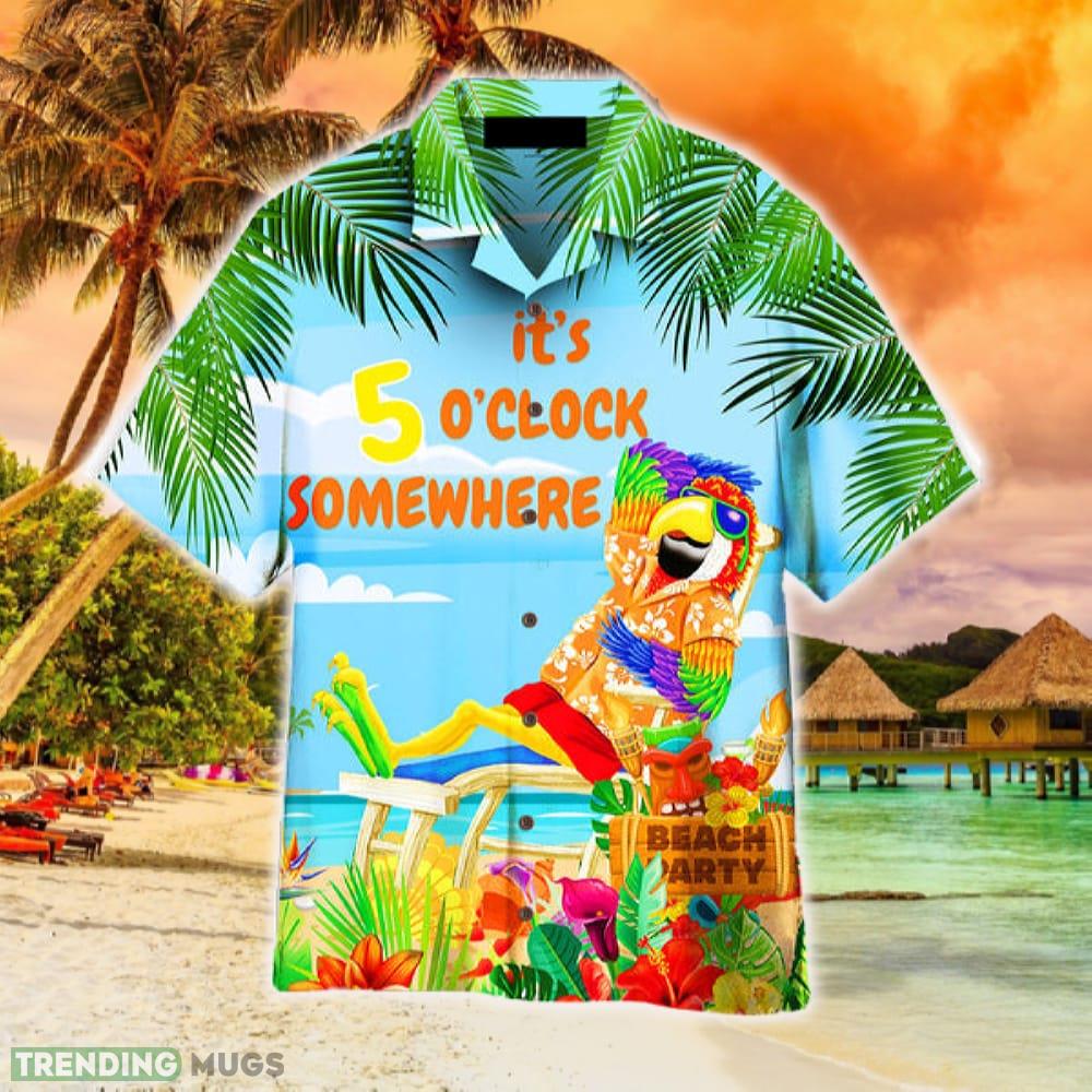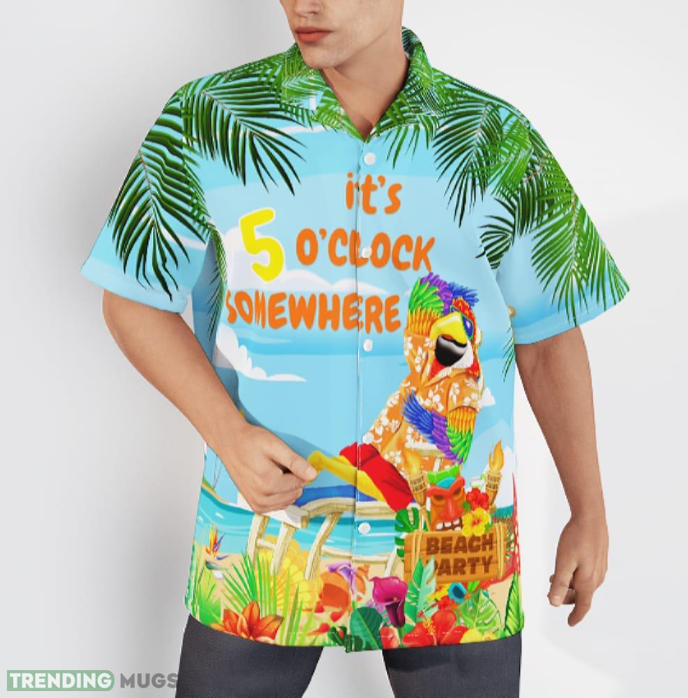 Some of the It’s 5 O’clock Somewhere Parrot Blue And Rainbow Hawaiian Shirt Summer For Men And Women photos