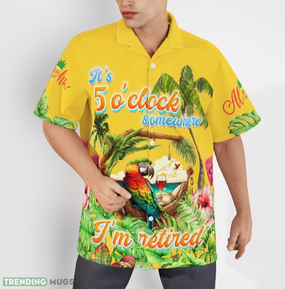 It’s 5 O’clock Somewhere Parrot Yellow Tropical Hawaiian Shirt Summer For Men And Women Details: