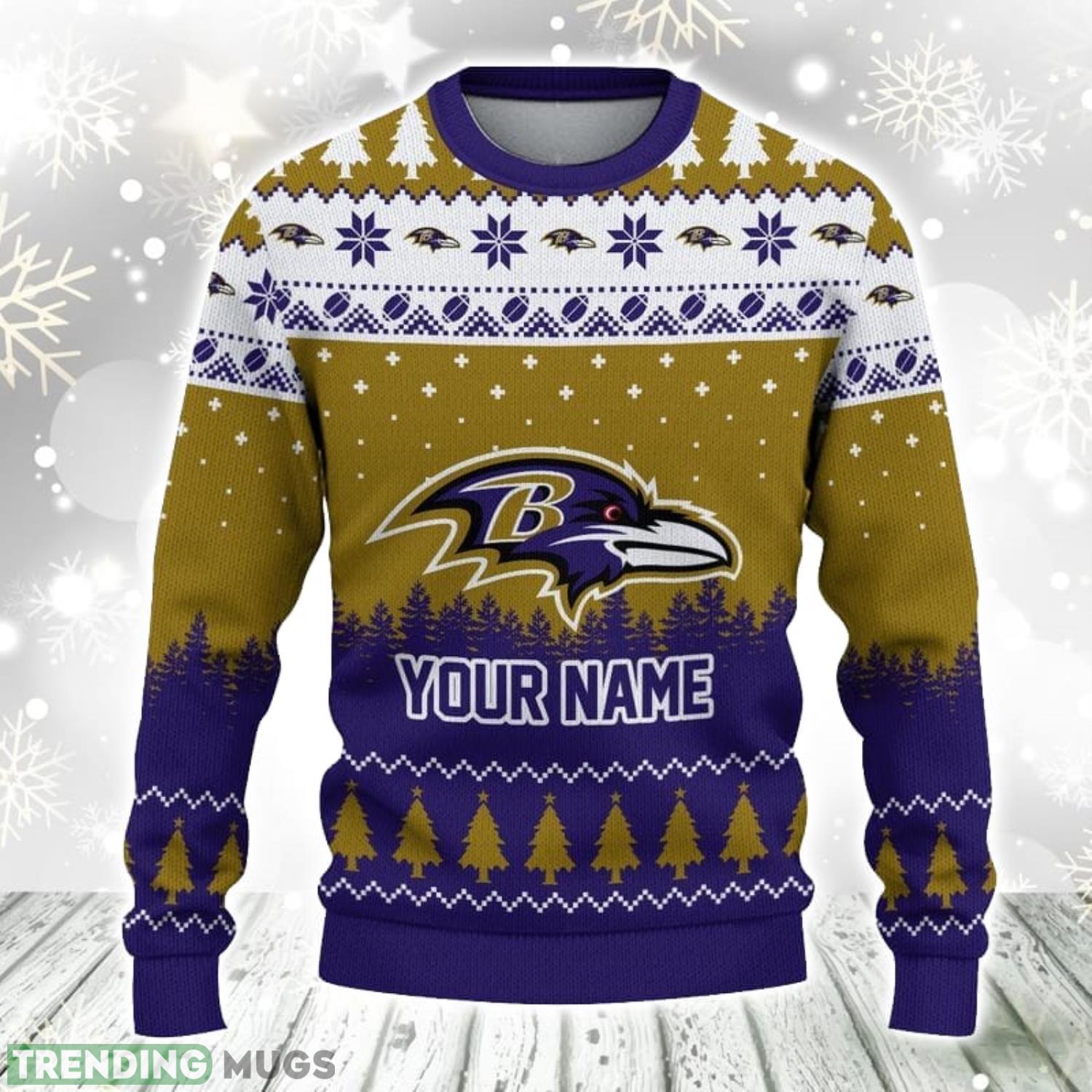 Not only does this sweater embody team spirit and holiday cheer, but it also showcases your unique sense of style. Stand out from the crowd and make a statement with this one-of-a-kind sweater that combines the warmth of the holidays with your unwavering love for the Baltimore Ravens.
