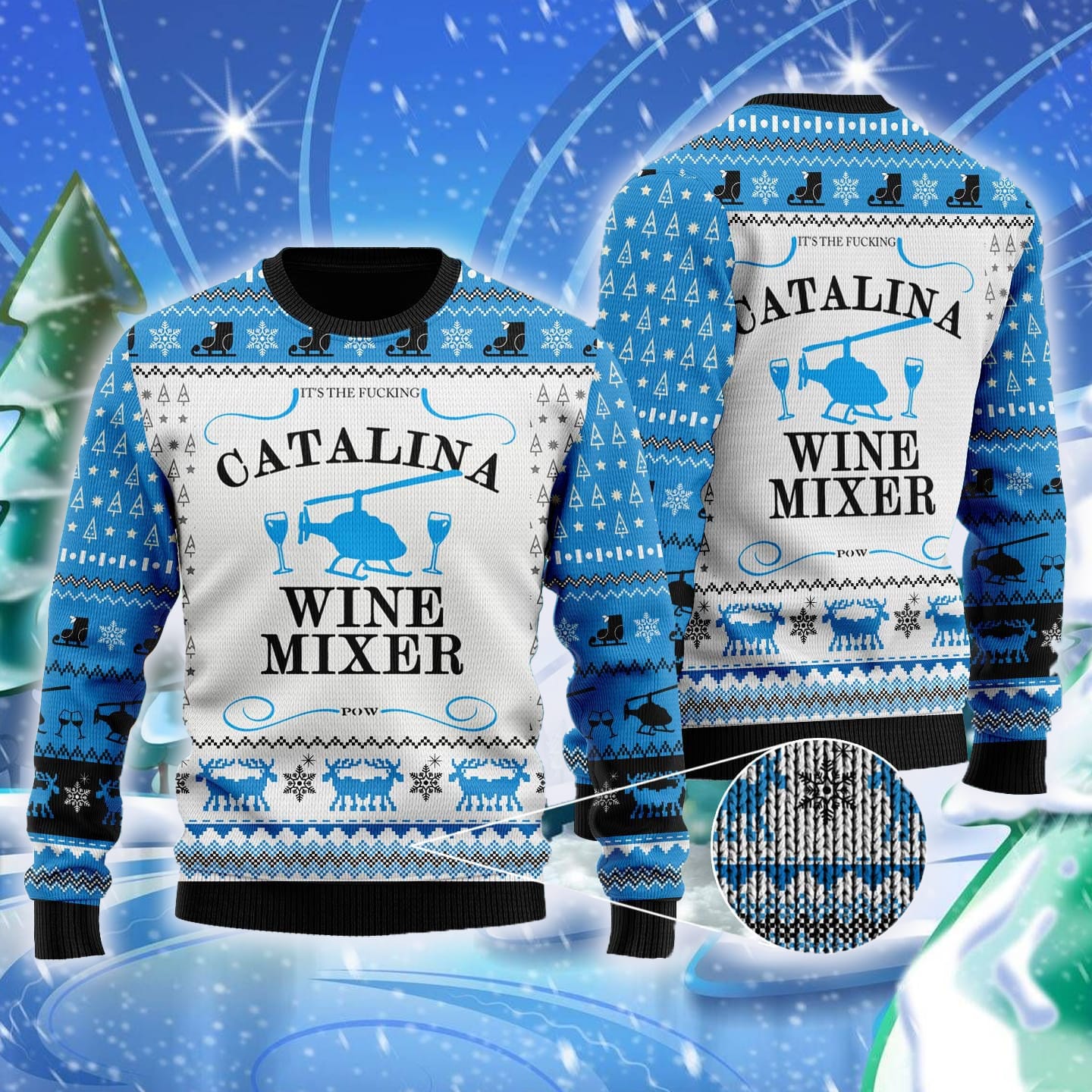 Get ready to make a statement this holiday season with our eye-catching “It’s The Fcking Catalina Wine Mixer Ugly Christmas Sweater”! Designed for wine lovers and fans of the hilarious brother movie, this 3D wool sweater is the perfect gift idea for family trips or simply spreading some festive cheer.