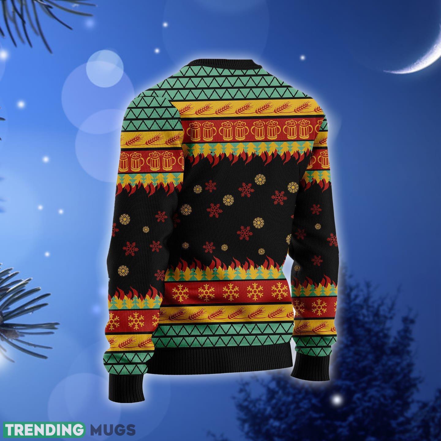 Crafted with utmost care, this sweater features a vibrant and playful design that captures the essence of Christmas cheer. The intricate detailing showcases a lively scene of snowflakes, beer mugs, and jolly holiday motifs, making it the perfect conversation starter at any holiday gathering.