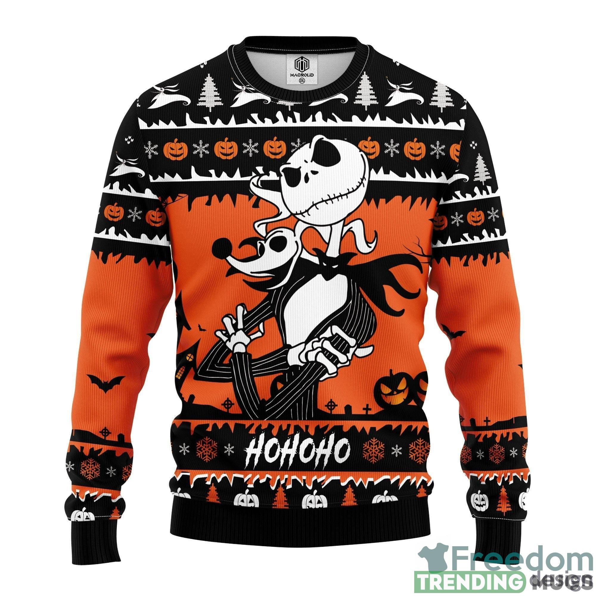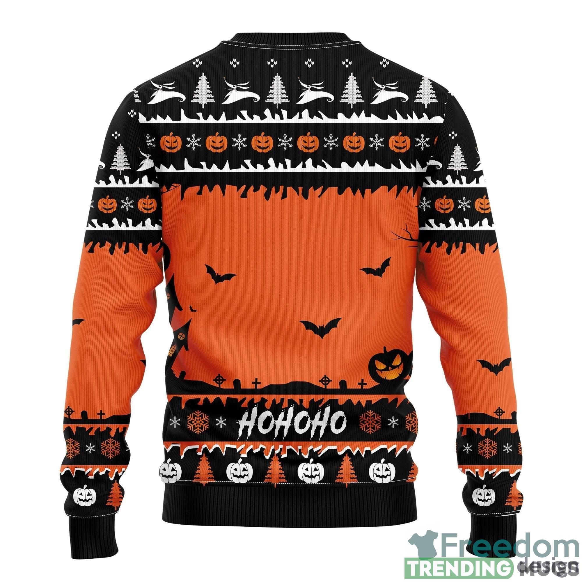 Featuring a delightful design inspired by the beloved characters from Nightmare Before Christmas, Jack and Zero, this sweater combines the spooky charm of Halloween with the joyful spirit of Thanksgiving and Christmas. The intricate details and vibrant colors make it a true work of art that you’ll love to show off.