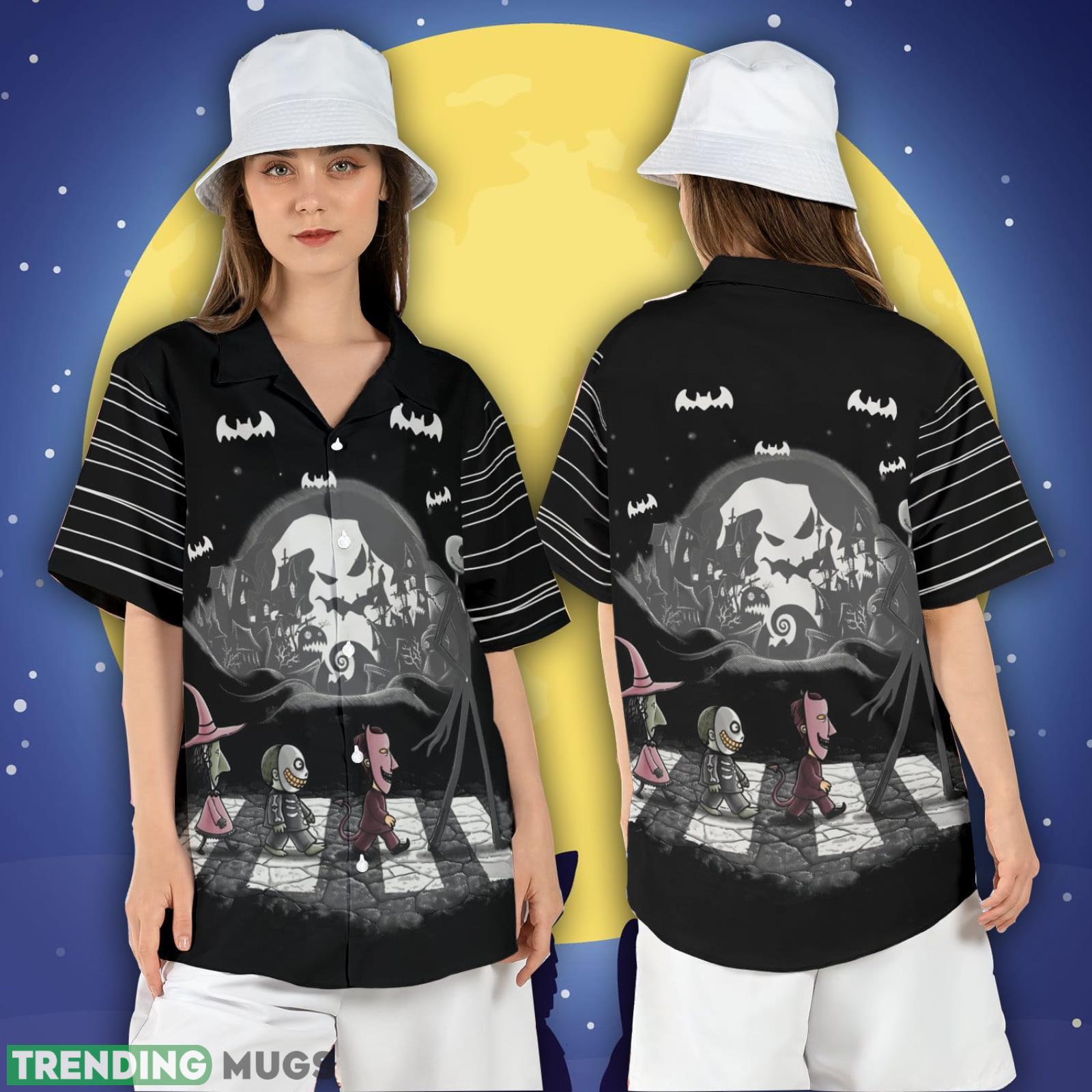 Get ready to rock your Halloween style with our Jack Skellington and Babies Abbey Road Halloween Hawaii Shirt! Inspired by the iconic Abbey Road album cover, this Nightmare Before Christmas Beach Hawaii Shirt is the perfect blend of spooky and tropical vibes.
