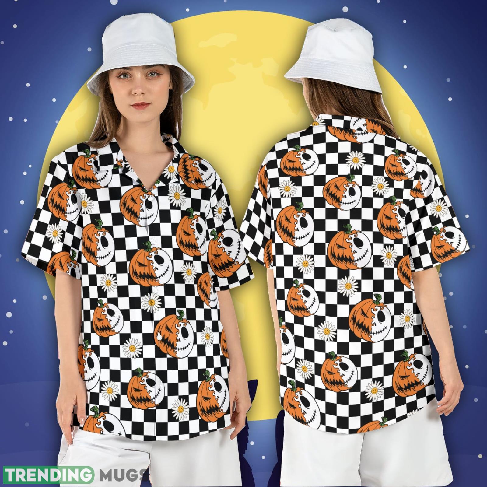 Jack Skellington Pumpkins Halloween Hawaiian Shirt Beach Halloween Checkered Hawaii Shirt Details:
