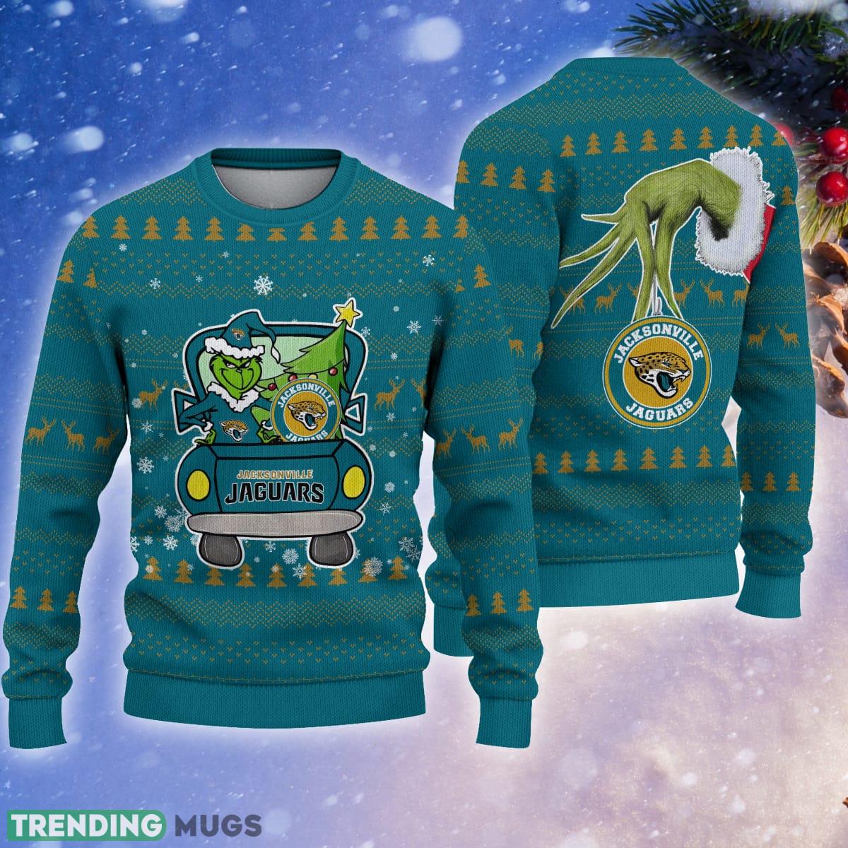 Jacksonville Jaguars And Grinch Driving With Pine Trees Ugly Christmas Sweater Gift For Fans Informations: