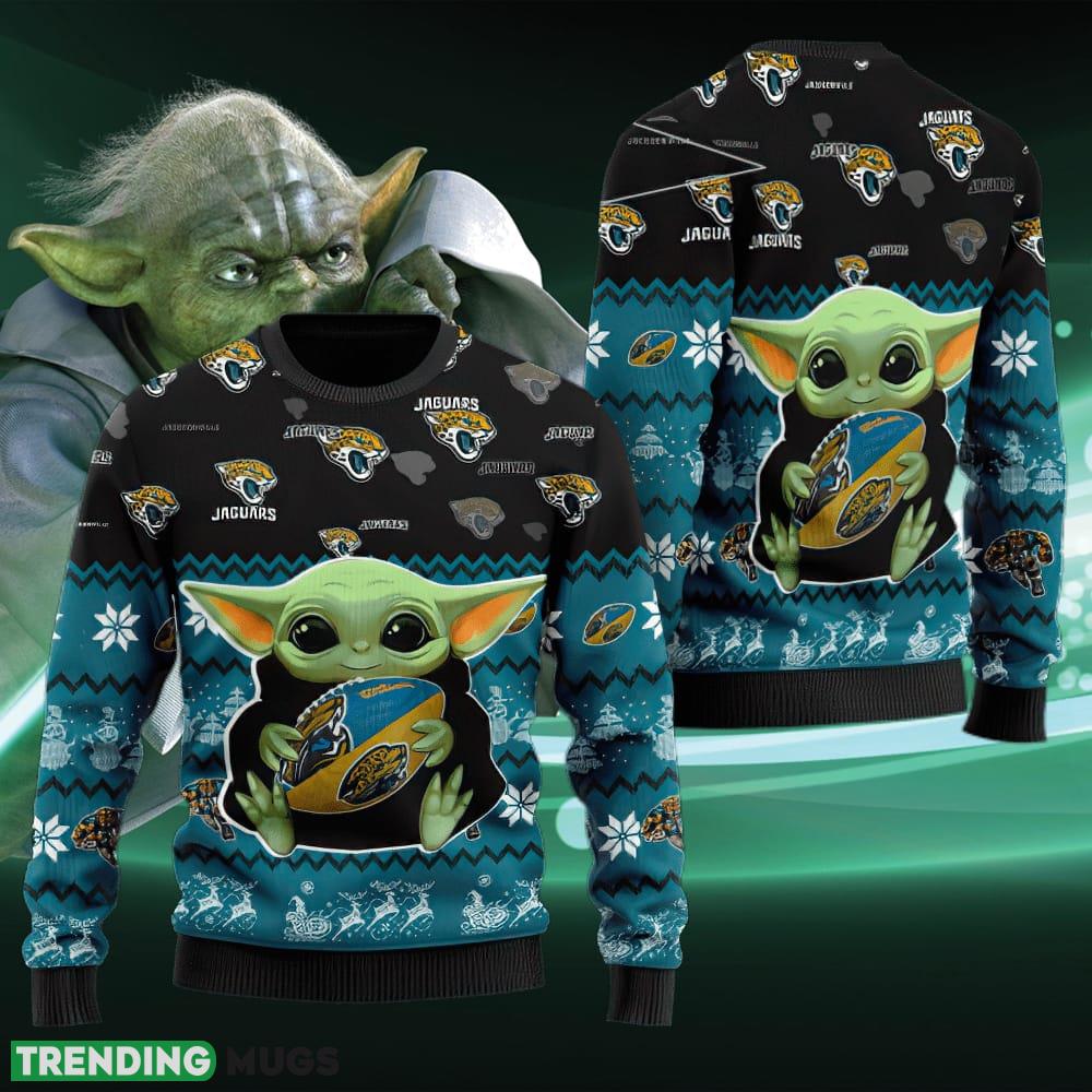 Not only is this sweater a trendy addition to your wardrobe, but it also makes for a fantastic gift for any football-loving friend or family member. Spread the joy and share the team spirit this holiday season by surprising your loved ones with this unique and eye-catching Jacksonville Jaguars Baby Yoda Shirt For American Football Fans Ugly Christmas Sweater Turtleneck.