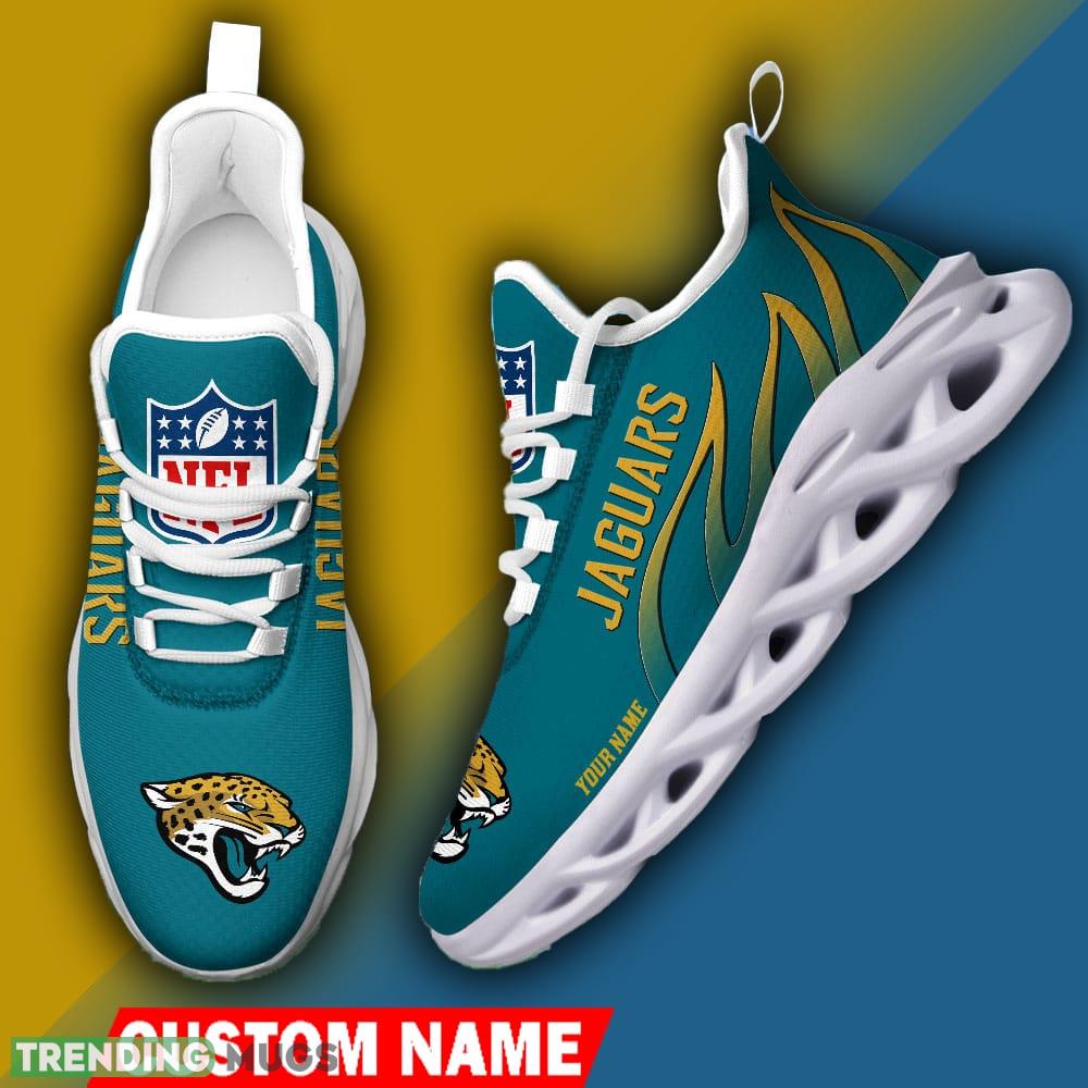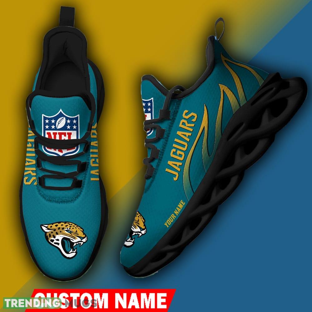Jacksonville Jaguars Custom Name NFL Logo Flame Max Soul Shoes For Men Women information: