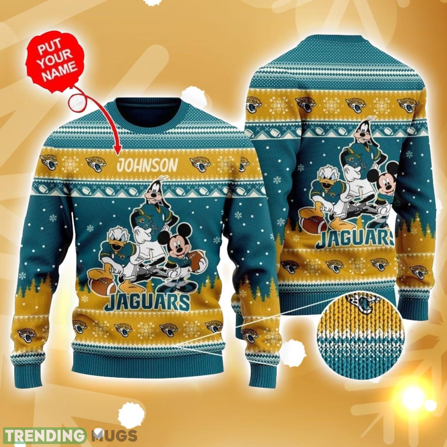 Jacksonville Jaguars Disney Donald Duck Mickey Mouse Goofy Custom Name Sport Fans Christmas Gift Ugly Christmas Sweater Informations: