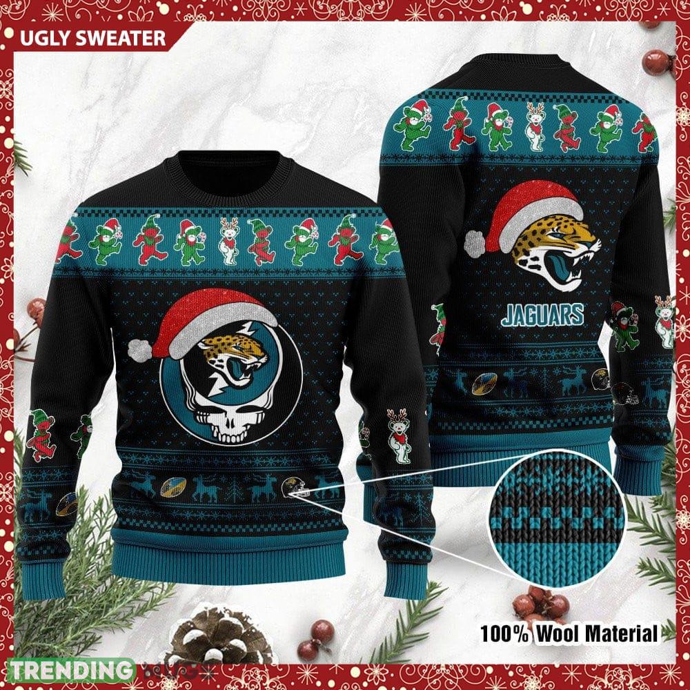 Jacksonville Jaguars Grateful Dead SKull And Bears Knitted 3D Sweater For Christmas – Jacksonville Jaguars Grateful Dead SKull And Bears Knitted 3D Sweater For Christmas