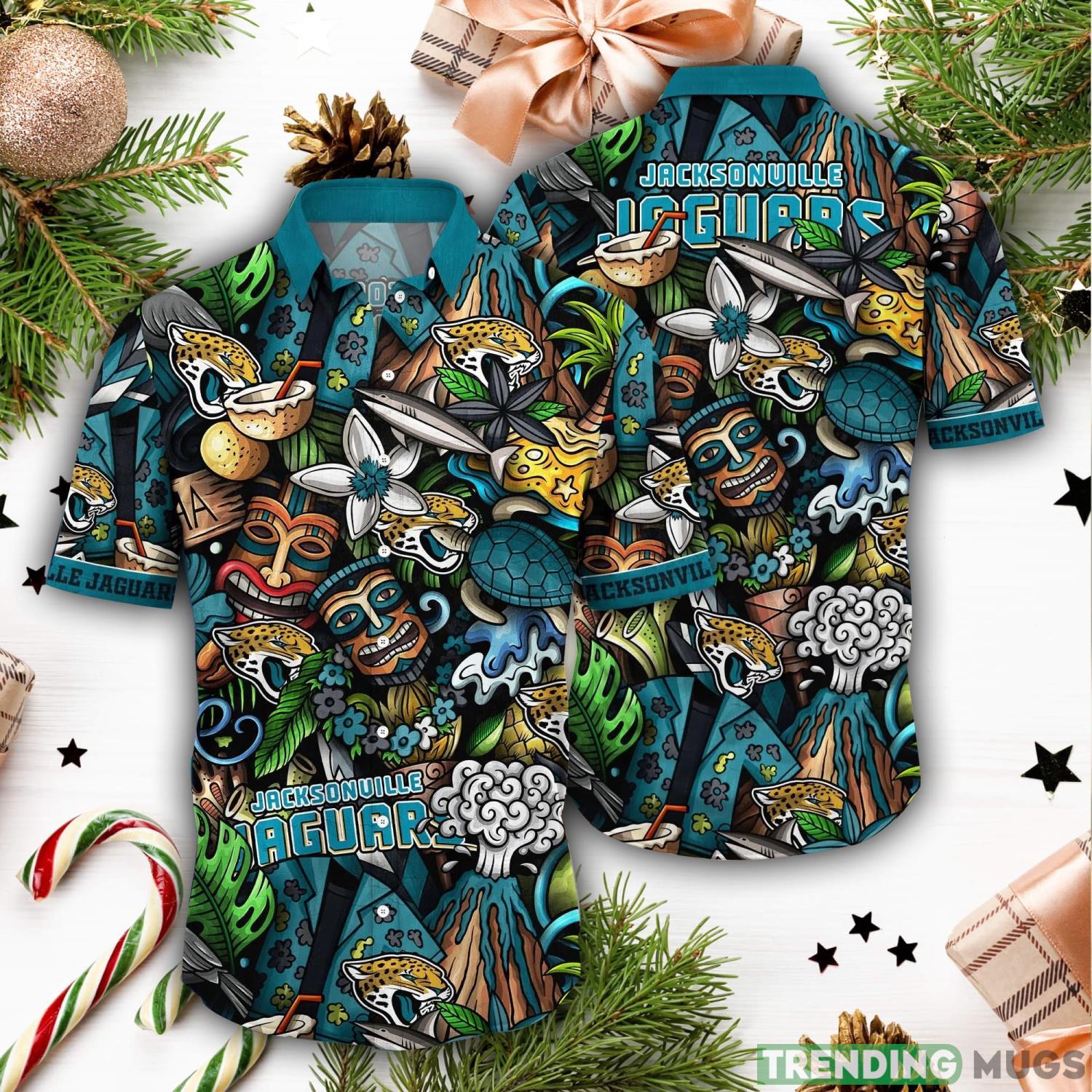 Designed specifically for devoted Jacksonville Jaguars fans, these shirts feature the iconic team logo proudly displayed on the front. The flower pattern, reminiscent of the beautiful Hawaiian islands, adds a unique touch that sets these shirts apart from the rest.
