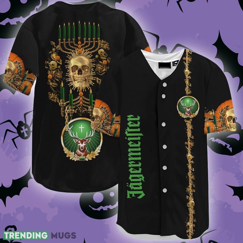 Jagermeister Golden Skull And Pumpkin Baseball Jersey Shirt Information: