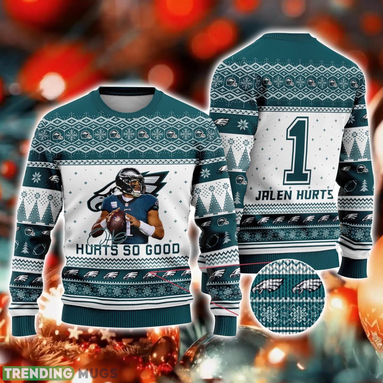 Jalen Hurts Philadelphia Eagles Hurts So Good Number 1 NFL Ugly Christmas Sweater Christmas Gift For Sport Fans Product Photo 1