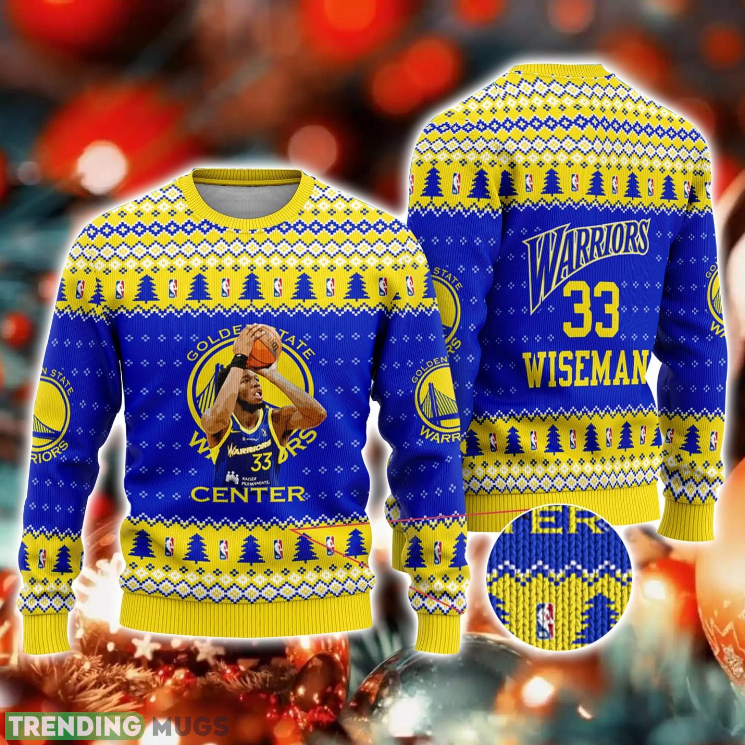 Featuring the beloved rookie James Wiseman, this sweater combines holiday cheer with your passion for basketball. The intricate design showcases the team’s iconic logo, vibrant colors, and festive elements like snowflakes, candy canes, and reindeer. It’s the perfect way to stand out at any holiday gathering or NBA watch party!