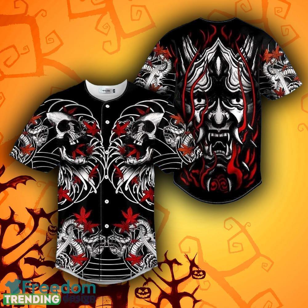 Japanese Oni Demon Halloween Skull Baseball Jersey Shirt Gift Men Women