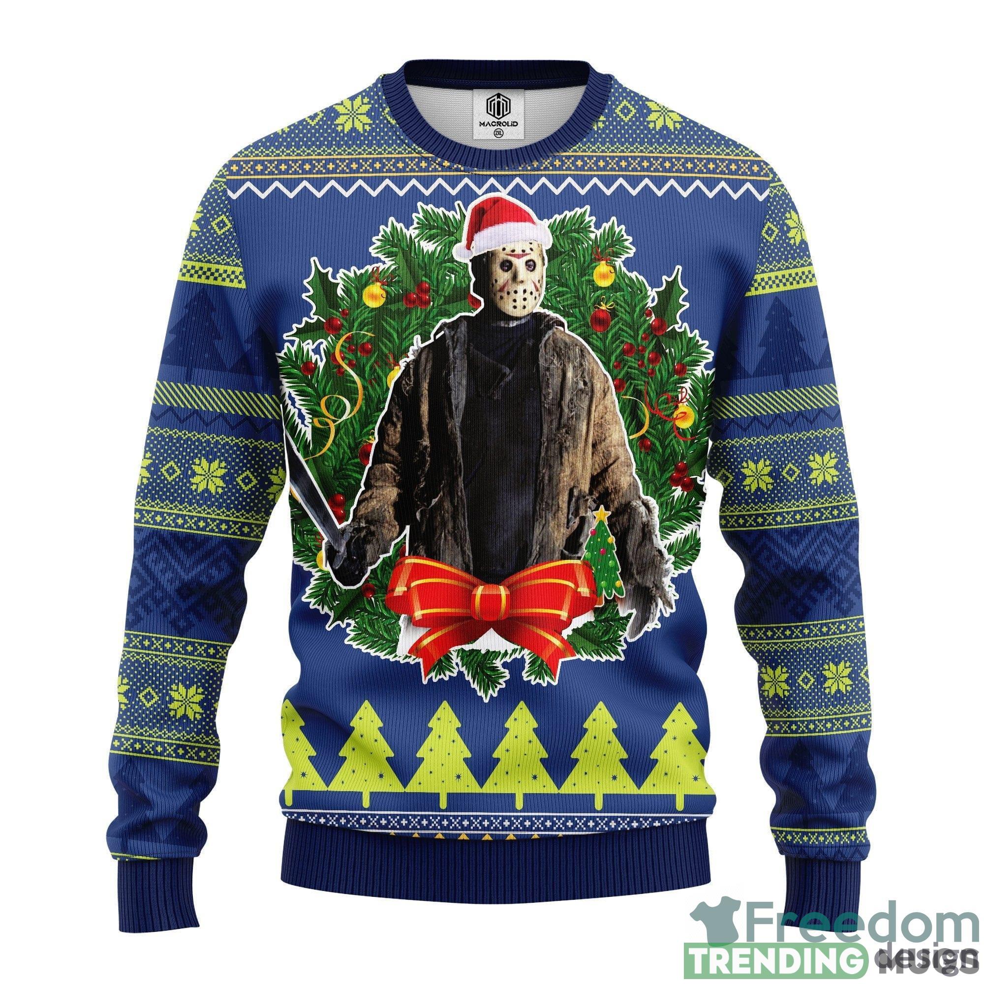 Designed with the iconic character Jason Woorhees, this sweater adds a touch of spookiness to your holiday wardrobe. Whether you’re attending an ugly Christmas sweater party or just want to stand out during family gatherings, this sweater is bound to turn heads and spark conversations.