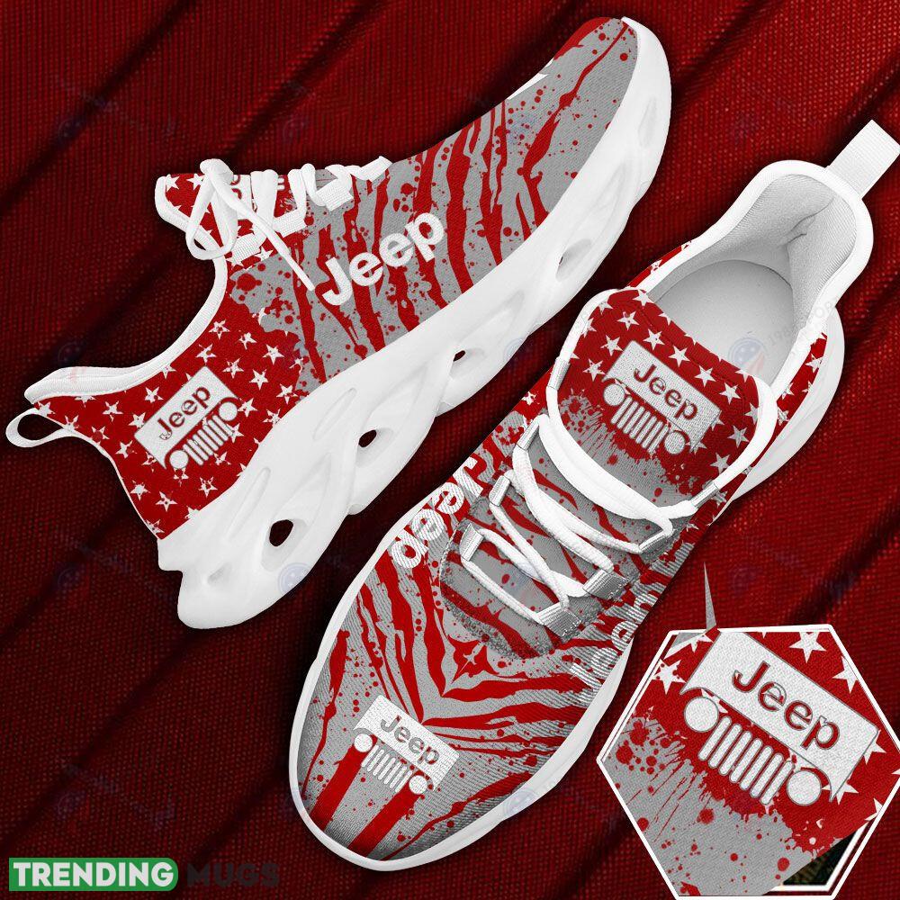 This Jeep Car And Motorcycle Racing Running Shoes Red Max Soul Sneakers For Men Women is a breathable, lightweight, and comfortable casual outdoor shoe that has a unique design. It is made of a mesh fabric which makes it sweat absorbent and breathable, while the rubber bottom ensures traction, comfort, and durability. It is available in two colors: black or white sole. There are two styles of shoelace holes so you can choose your preference.