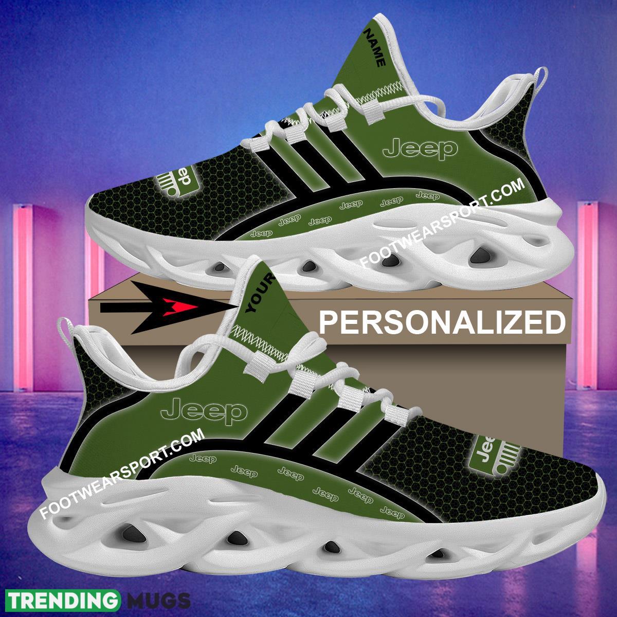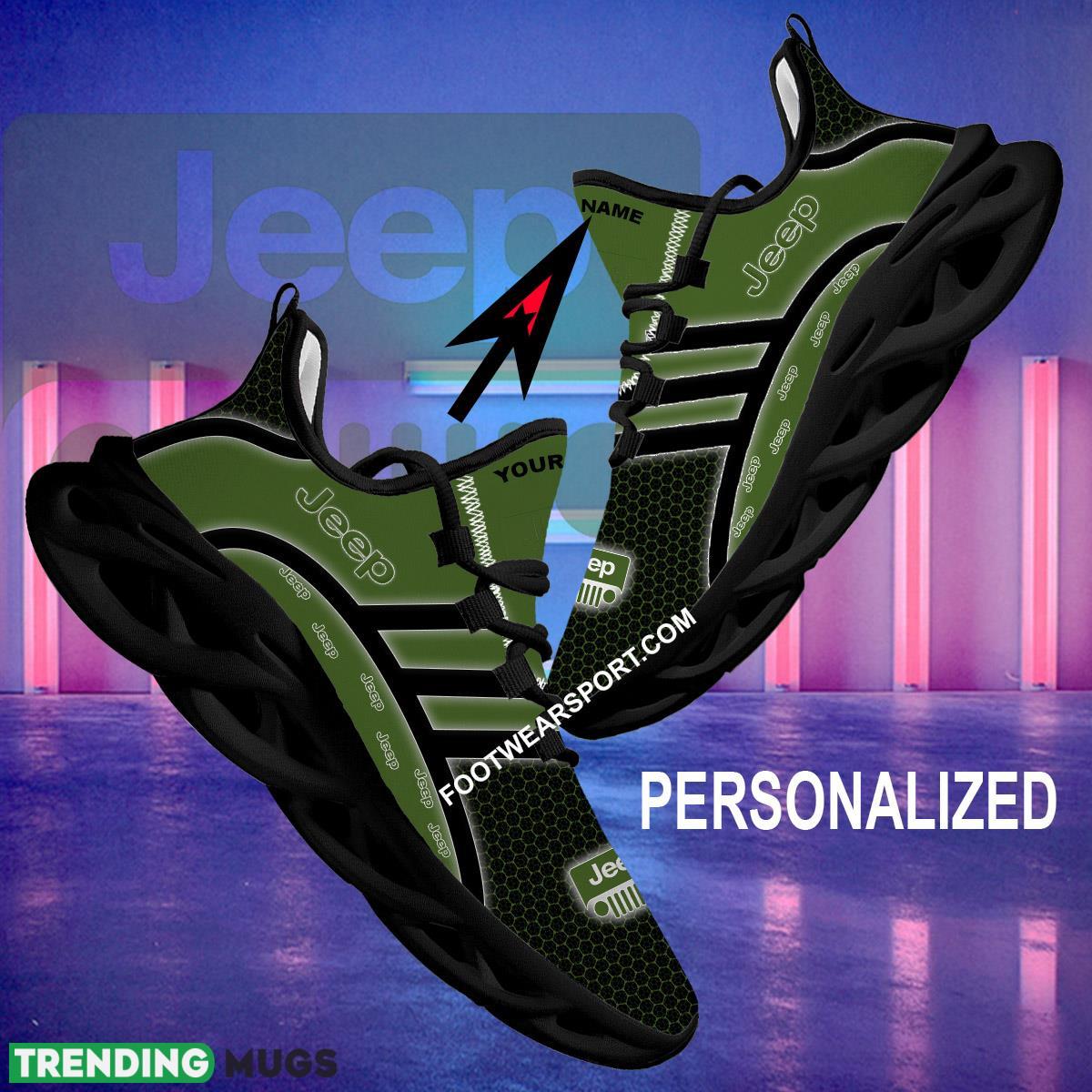This Jeep Car Racing Max Soul Shoes Brand For Fans Gift Aesthetic Chunky Sneaker Custom Name Max Soul Shoes is a breathable, lightweight, and comfortable casual outdoor shoe that has a unique design. It is made of a mesh fabric which makes it sweat absorbent and breathable, while the rubber bottom ensures traction, comfort, and durability. It is available in two colors: black or white sole. There are two styles of shoelace holes so you can choose your preference.