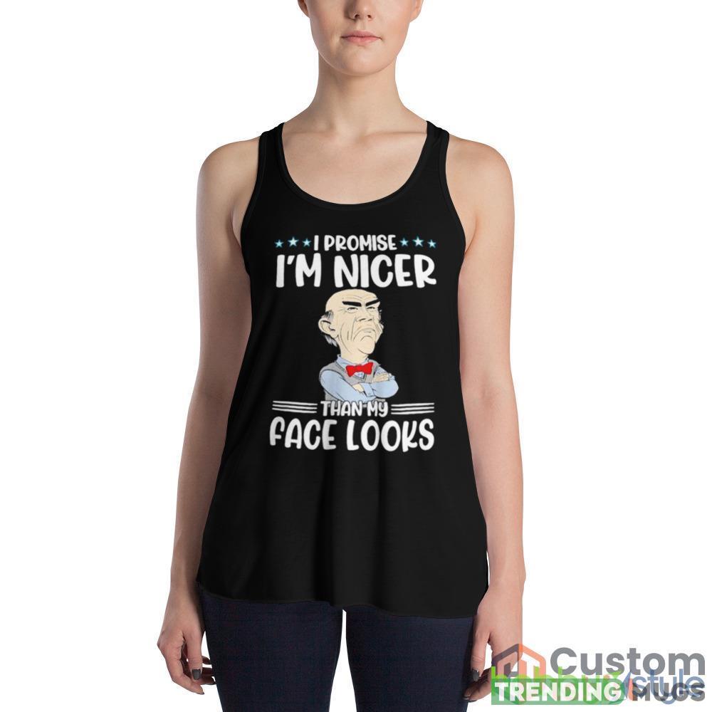 Jeff Dunham I promise I’m Nicer than My face looks Print T-Shirts – 8800 Women’s Flowy Racerback Tank