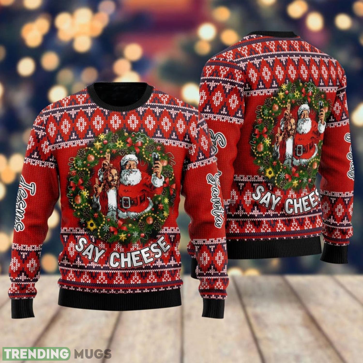 Embrace the Christmas spirit and make lasting memories with your family while wearing this special holiday sweater. So, why wait? Order your Jesus And Santa Say Cheese Christmas Gift Ugly Christmas Sweater today and let the festivities begin!