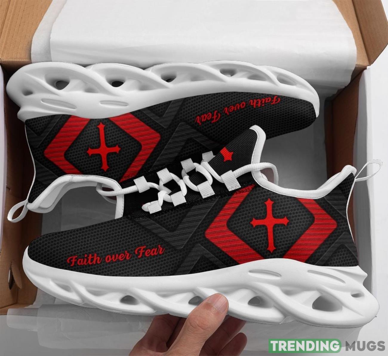 Jesus Faith Over Fear Max Soul Shoes Running Sneakers Sport Sneakers Gift Red Black Product Photo 1