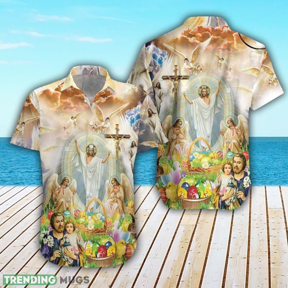 Jesus Happy Easter Lover Short Christi Button Down Jesus Vintage Beach Printed 3D Hawaiian Shirt Details: